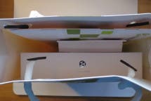 Als witzig kann die die Verpackung des Kingzone N3 bezeichnet werden. Geliefert wird das Gerät inklusive Zubehör in einer Papiertasche mit Tragegriff. In dieser Tasche befindet sich dann die Verpackung mit dem N3 und den Accessoires, eine DIN A5 grosse Imagebroschüre mit Produktneuheiten des Herstellers und ein Flip Case aus Leder, welches auch NFC unterstützt.