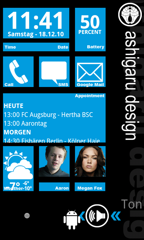 So habe mich mal ran gemacht meinem Lockscreen (teslacoil WidgetLocker) einen Hauch von WP7 zu verleihen.