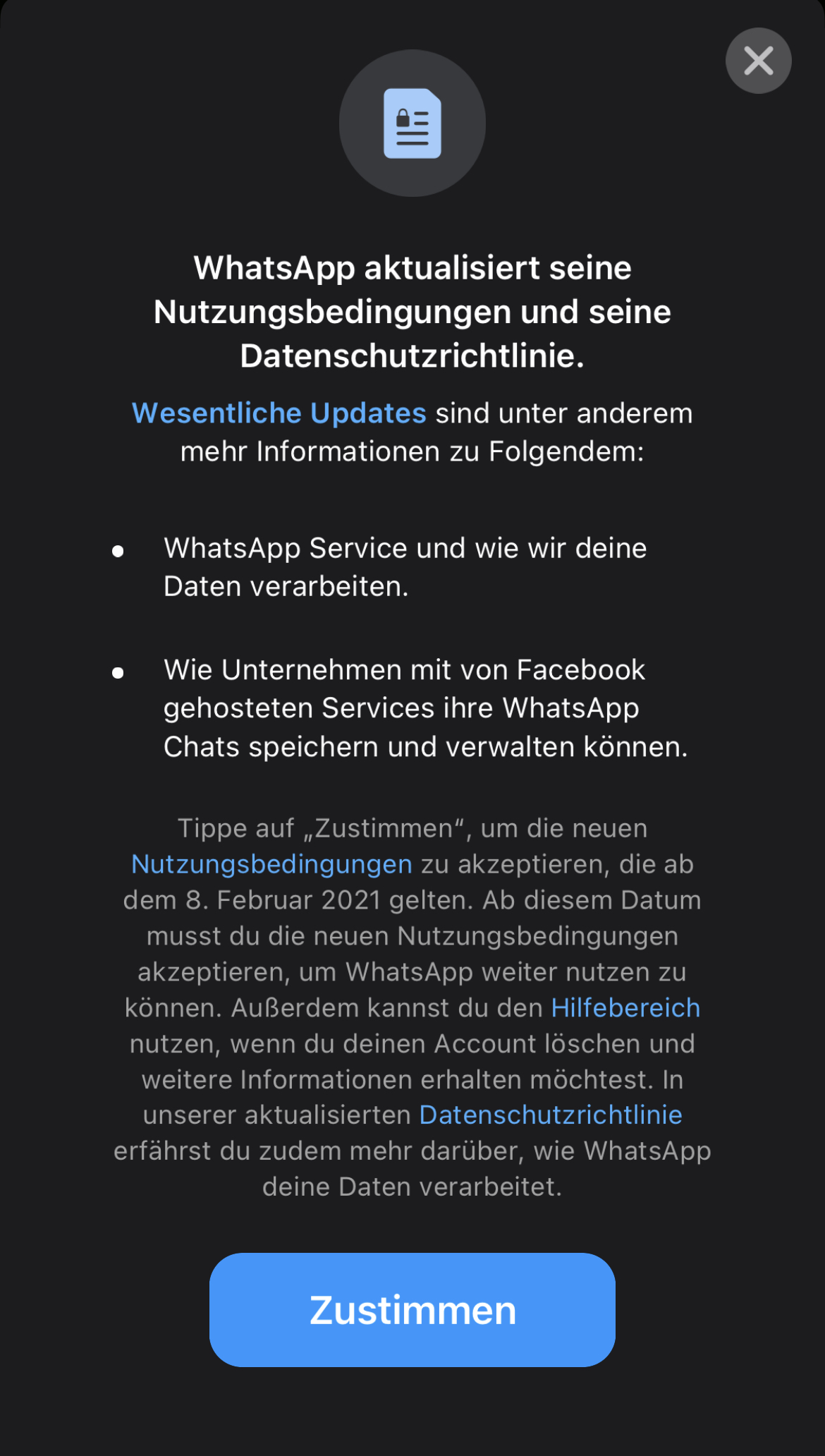Habe gerade eine Meldung beim Öffnen von WA bekommen. Hab sie erst mal ignoriert und wenn sie das nä. Mal aufploppt werde ich mal die Nutzungsbedingungen lesen.