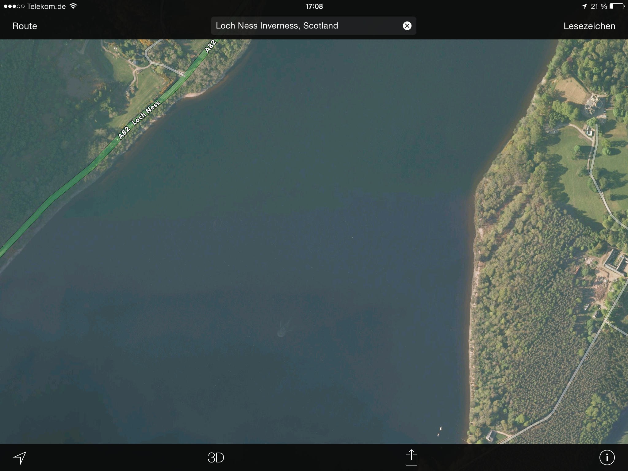 Wieder einmal gibt es Stoff zum diskutieren. Sucht man in Apple Maps nach "Loch Ness, Inverness, Scotland", geht man dann ans obere Ende in Richtung des Ortes Lairgmore und zoomt dann aufs Wasser, so macht man eine interessante Entdeckung: Nessie?!
