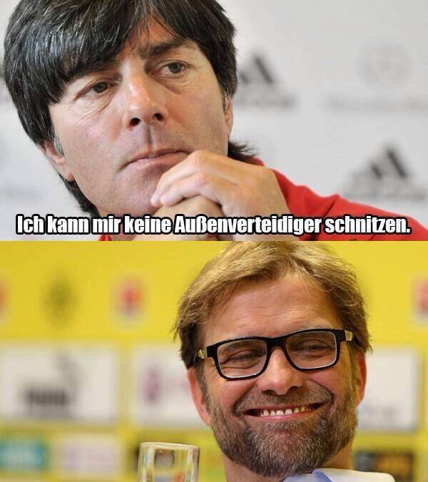 Schmelzer und Mustafi ist ja schon irgendwo verständlich, aber kein Volland? Alter... Götze ist keine falsche Neun, der ist ne schlafende oder "nicht vorhandene Möglichkeit für so ein Spielsystem" ... Meine Fresse, ich kriegs kotzen! Volland MUSS mit! Klose ist zu alt und sonst wars das... Müller ist zwar geeignet, aber er ist auch eigentlich Mittelfelder und daher wird es insgesamt recht schwierig.