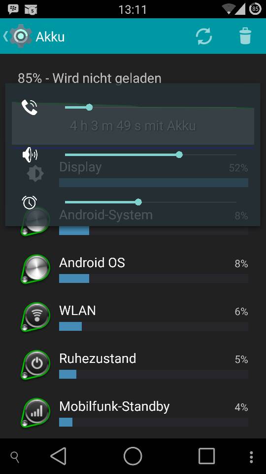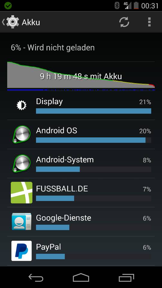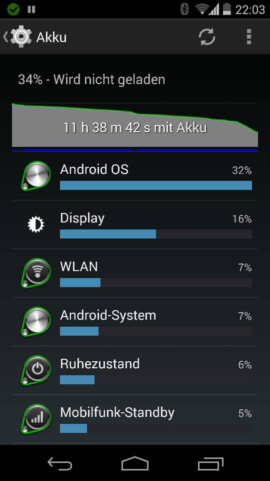 Ortungsdienste wieder aktiviert und damit auch Google Now, jetzt ist der Verbrauch wieder doppelt so hoch, heißt nach 9-10h ist der Akku alle.