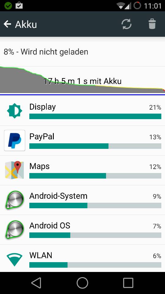 Hält auf jeden Fall wieder normal lange, AndroidOS steht immer noch ganz oben. Ich habe es aber noch nicht ganz aufgeladen gehabt. Wenn das passiert ist, schaue ich nochmal.