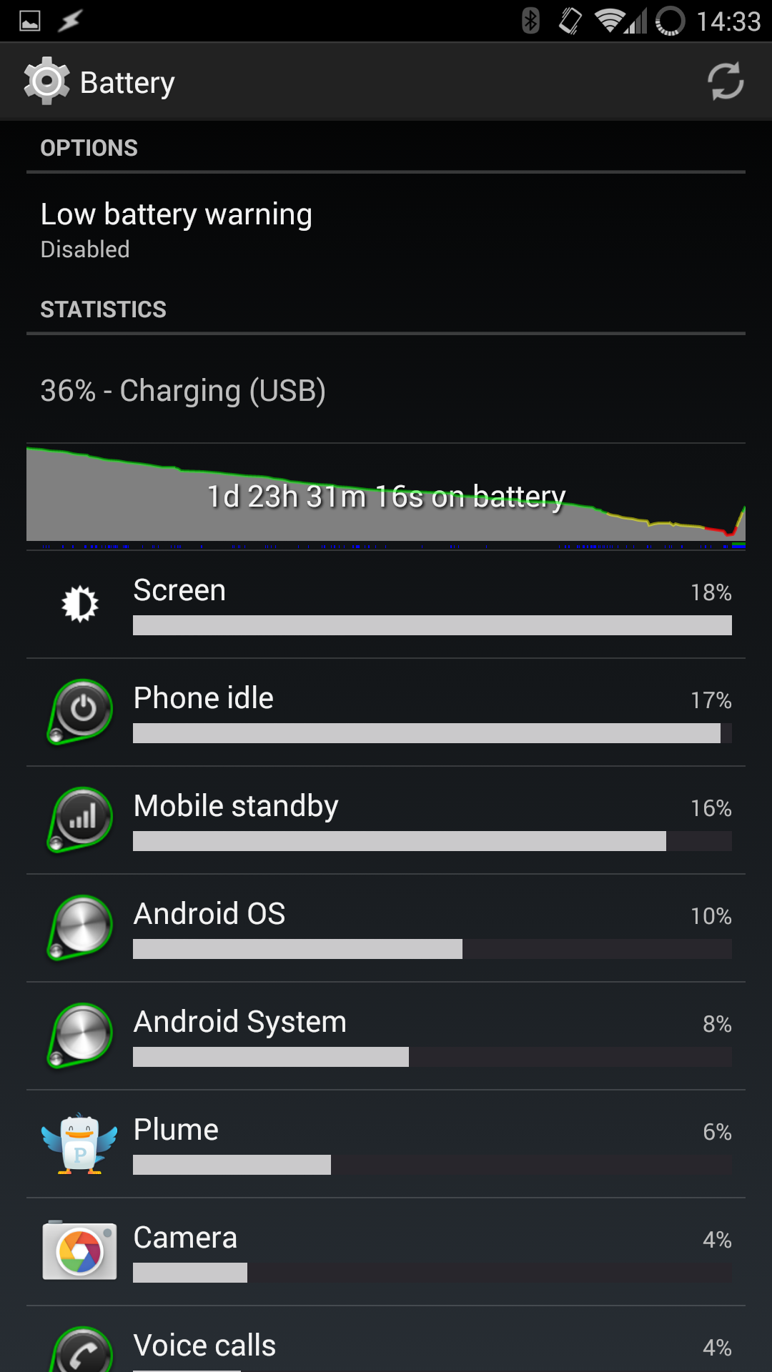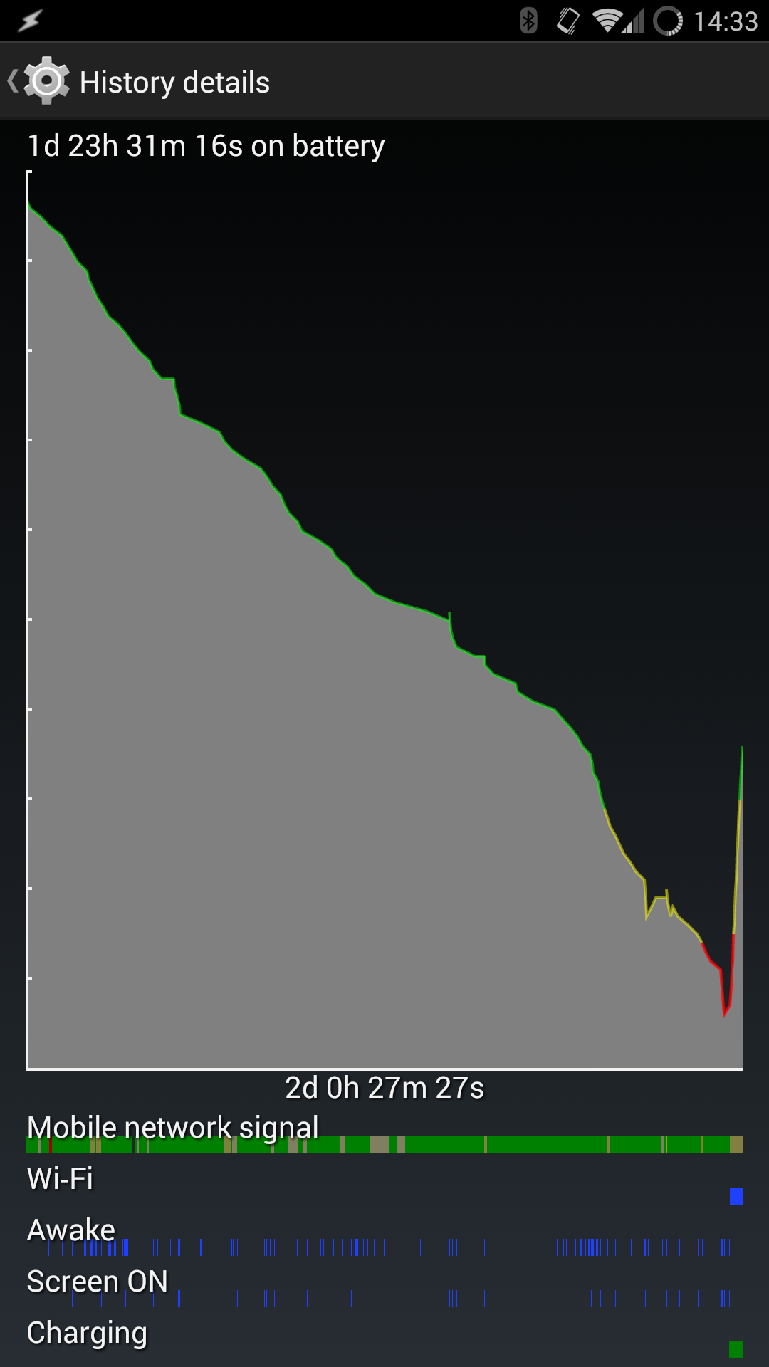 Ich frage mich wie die da mit KitKat auf knapp 6h Displaylaufzeit kommen, wobei... 3h DisplayOn + ca 24h Standby kommt bei mir so in etwa hin.