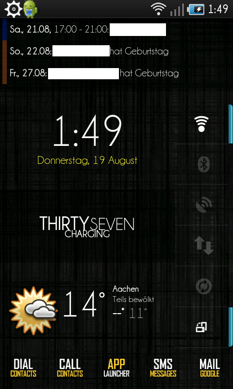 Hier meine aktueller Homescreen. Jetzt perfekt für mich, hab jetzt alles was ich auf einen Schlag sehen muss. Nicht mehr nicht weniger ^