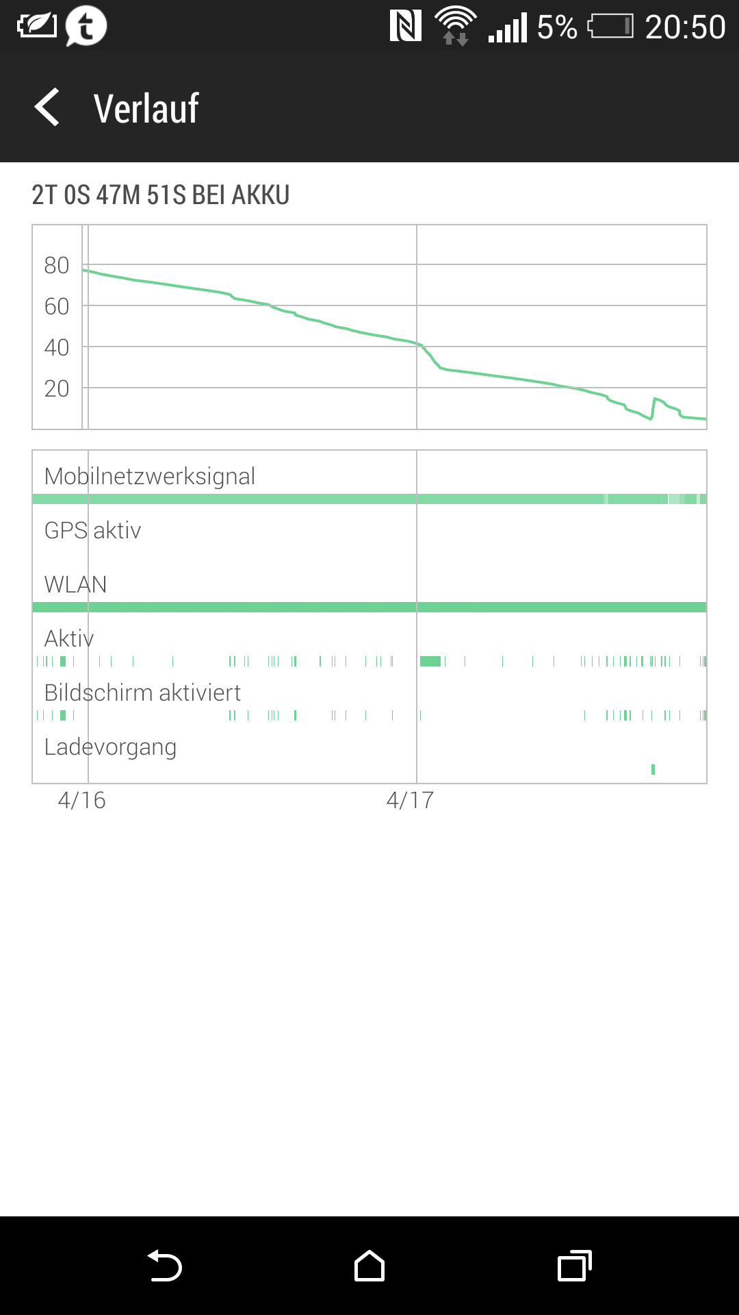 Bei M7 wenn ich unter 10% Akku gehabt habe, waren die restlichen Prozente ziemlich schnell weg. Bei M8 schaut das ganz anders aus. Pure Begeisterung was die Akkulaufzeit angeht.