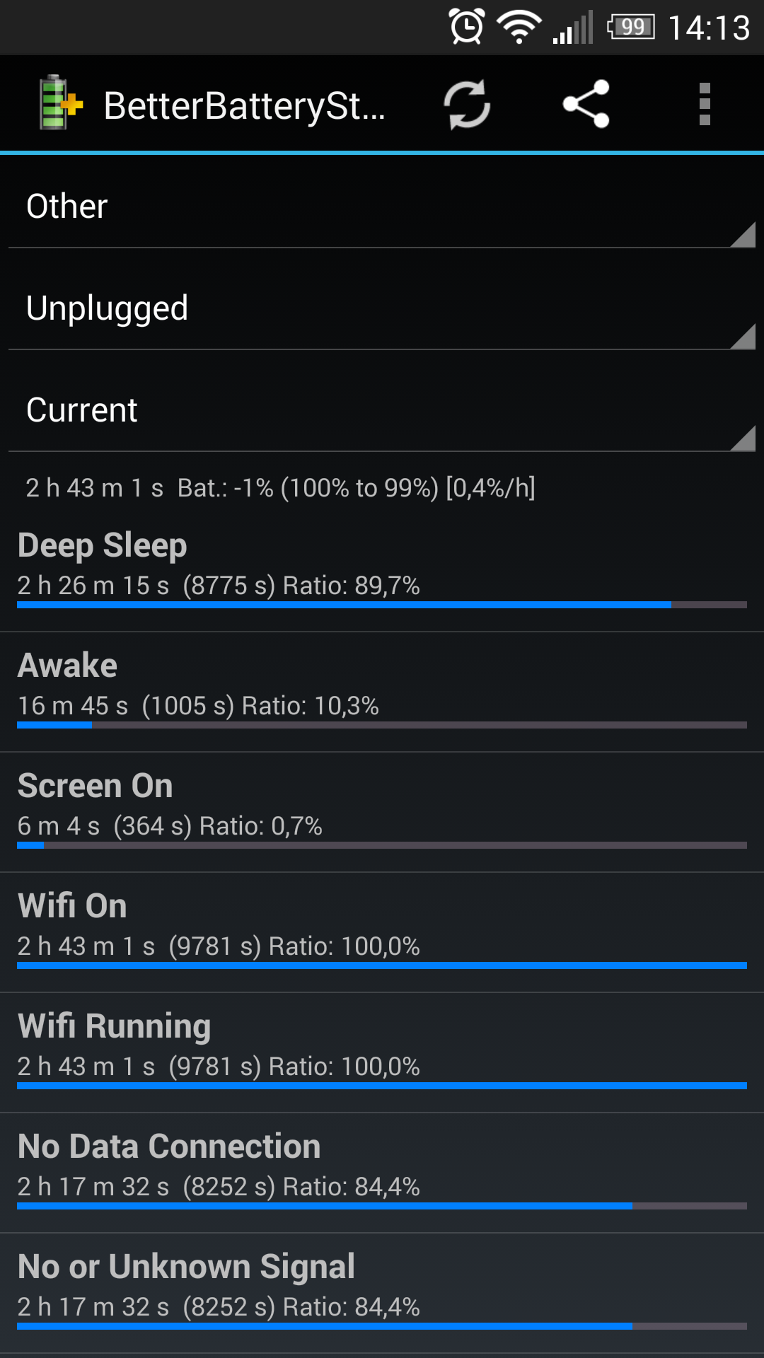 Nach fast 3 Stunden im WLAN ( ohne große Benutzung, also quasi im "Schlaf" ) nur 1 % weniger.