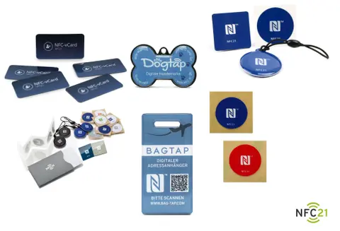 Die Produkte sind mit verschiedenen Chipsätzen der NXP NTAG21x Serie ausgestattet.. Die NXP NTAG21x Serie besticht durch grösstmögliche Kompatibilität, guter Performance und intelligenten Zusatzfunktionen. Jeder einzelne Chip besitzt eine einmalige Seriennummer (UID) bestehend aus 7 Byte (alphanumerisch, 14 Zeichen). Der NFC-Chip kann bis zu 100.000 Mal beschrieben werden und hat einen Datenerhalt von zehn Jahren. Alle Chips besitzen das UID ASCII Mirror Feature, mit dem die UID des Tags an die NDEF Nachricht angehängt werden kann sowie einen integrierten NFC Counter, der sich beim Auslesen automatisch erhöht. Beide Funktionen sind standardmässig nicht aktiviert. Die Chips sind mit allen NFC-fähigen Smartphones, den NFC21-Tools sowie mit allen ISO14443 Endgeräten kompatibel.