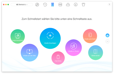 Ebenfalls möglich sind Aktionen zum Konvertieren von Videos in das richtige Format, welche dann nicht einmal über iTunes synchronisiert werden müssen, sondern einfach per AnyTrans einfach auf das Gerät kopiert werden kann. Das Funktioniert auch mit anderen Dateien, wie Dokumenten oder eigenen Musikstücken. Wer aber dennoch nicht auf iTunes verzichten will, kann entsprechende Daten auch von AnyTrans nach iTunes kopieren lassen und umgekehrt kann AnyTrans auch Daten aus iTunes herausziehen.