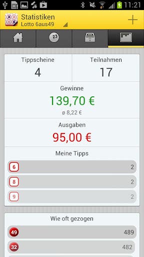 Anbei nimmt die App einen grossen Teil des Verwaltungsaufwandes ab. So können die Tippscheine sortiert werden, Ausgaben und Gewinne werden säuberlich abgelegt und zusammen gerechnet und vor allem auch die Unterstützung für viele Lottospiel-Arten sei an dieser Stelle erwähnt: