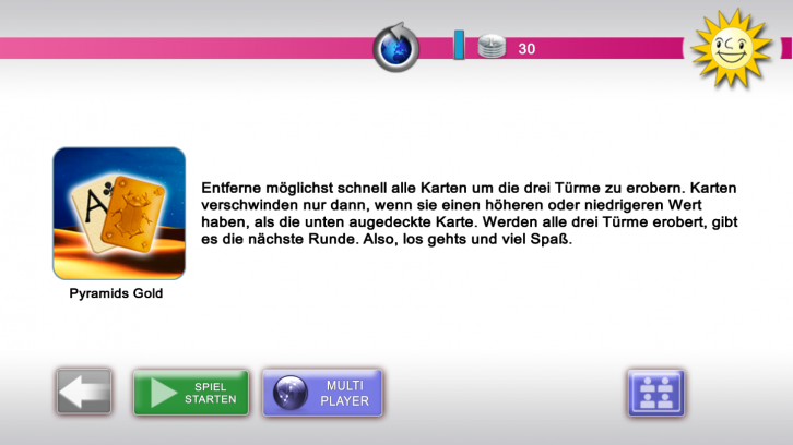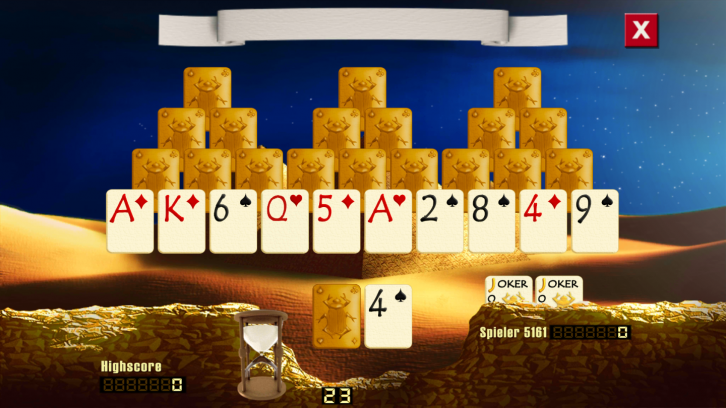 Die Spiele der Merkur eCup App sind alle für die Online- wie Offline-Nutzung konzipiert und eignen sich sehr gut für zwischendurch. Beispielsweise geht es bei Pyramids Gold darum, von drei pyramidenförmigen Kartenstapeln möglichst schnell alle Karten abzubauen, indem sie auf die aufgedeckte Karte aus dem Stapel gelegt werden. Das geht nur, wenn sie genau einen Wert höher oder tiefer als die aufgedeckte Karte zeigen.