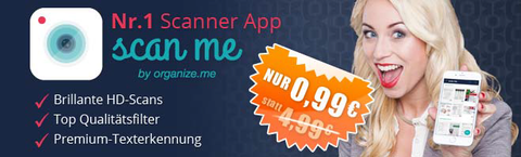 Um Dokumente zu digitalisieren, kann man zu jedem handelsüblichen Scanner greifen. Doch die Geräte brauchen Platz auf dem Schreibtisch und müssen zudem an einen Rechner angeschlossen sein. Geht das nicht auch einfacher? Kann man da nicht auch auch das Smartphone benutzen? Die Kameraauflösung müsste doch auch seit langem reichen. Ja, man kann! Mit der App scan me der organize.me GmbH aus München kann man mit seinem iOS-Gerät Dokumente einfach und rasend schnell einscannen, durchsuchen und teilen. Rechnungen, Verträge, Kochrezepte, Quittungen, alles ist fix und perfekt eingescannt. Der Rahmen wird automatisch erkannt und die Perspektivenkorrektur sorgen dafür, dass die fotografierten Dokumente immer bestmöglich zur OCR-Funktion gelangen und digitalisiert werden. Gespeichert wird das Ganze dann lokal auf iPhone, iPad oder in der Cloud (Google Drive, Dropbox oder auf organize.me) und kann anschliessend komplett durchsucht werden.