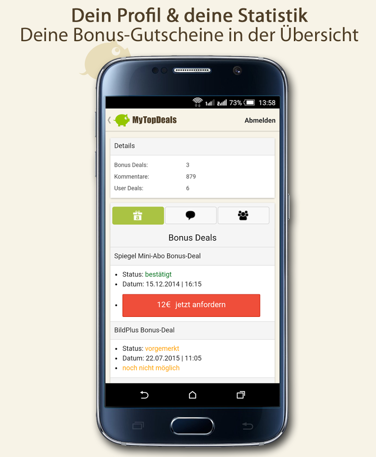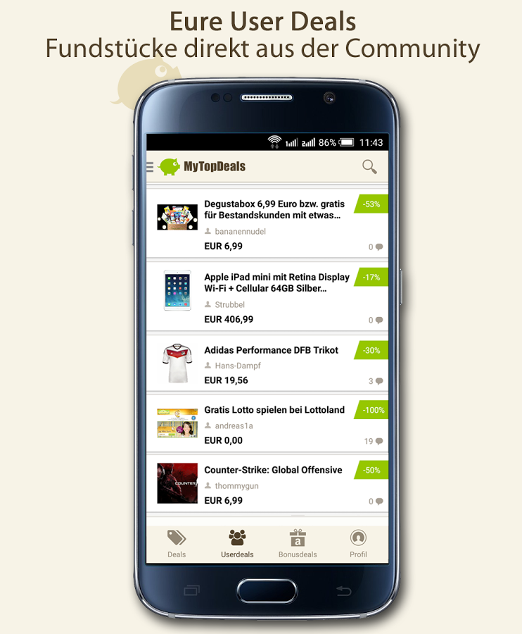 Ein Account wird zwar nicht gebraucht, könnte euch aber neben dem Einstellen eigener Deals noch weitere Vorteile verschaffen. So lassen sich im eigenen Profil von MyTopDeals interessante Schnäppchen vormerken und ihr könnt mit der Community in Kontakt bleiben. Komfortabel: Auch das Erstellen von Filtern ist möglich, die euch dann per Push-Nachricht über einkommende Deals der gewählten Einstellungen informieren. Generell hat die App und das System einen recht guten Ruf und geniesst mehr als 10.000 Positive Bewertungen.