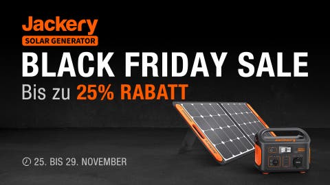 Verpasst nicht den Jackery Black Friday & Cyber Monday Sale und sichert euch sich sofort bis zu 25 Prozent Rabatt im Jackery Amazon Shop – nur bis 29. November!