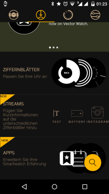 Auch können nun neu alle Benachrichtigungen auf einen Schlag oder auch alle einer bestimmten App (unter Android) auf der Vector Watch ausgeblendet werden, so dass man sich nicht mehr durch alle Notifications durch klicken muss. Neue Streams und Apps werden unterstützt, darunter eine Agenda, Kalender und Wunderlist, Instagram, Akkustand und personalisierter Text. Die Aktivitätsziele wurden verbessert und man kann die aufgezeichneten Daten nun sichern und wiederherstellen. Daneben wurden weitere Fehler behoben und andere kleine Verbesserungen, beispielsweise bei der Verbindung zur Uhr, durchgeführt und neue Sprachen hinzugefügt.