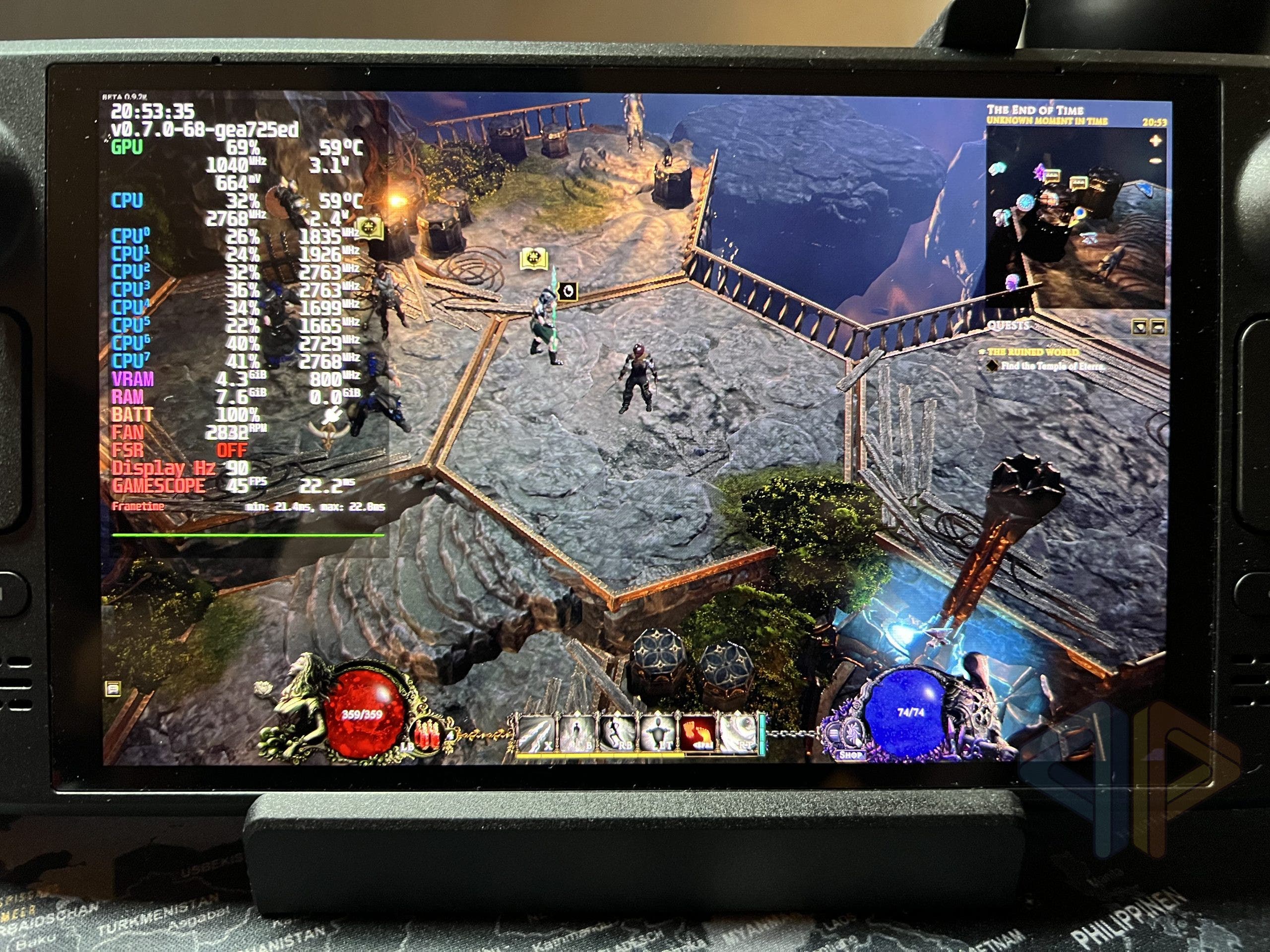 Zudem ist die Leistung im 40 oder 45 Hertz Modus für jeweils LCD und OLED-Version wirklich stark. Zwar merkt man dem Blizzard-Titel eine deutlich bessere Optimierung für den Controller an und auch die Texte sind an vielen Stellen besser lesbar. Hier hat Last Epoch auf dem Steam Deck noch etwas Verbesserungsbedarf. Aber vergleicht man die Ressourcen von 11th Hour Games mit dem grossen Konkurrenten, so wiegt dieser Punkt erstmal weniger tragisch und wir können vielleicht noch davon ausgehen, dass auch diese Punkte noch angegangen werden.