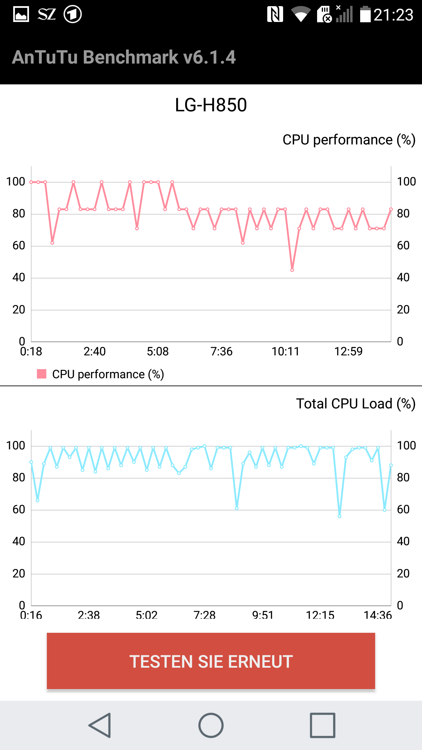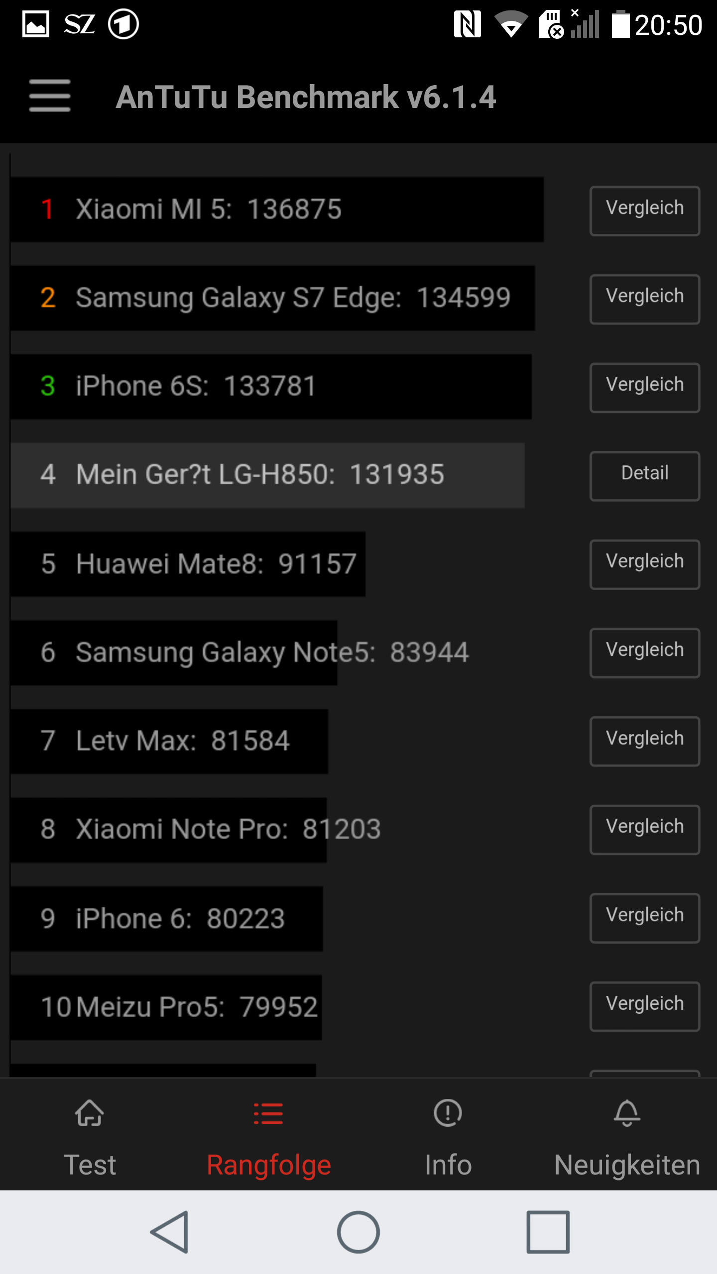 Der Snapdragon 820 wird von 4 GB RAM unterstützt und dies zeigt sich in der Leistung. Das Gerät ist sehr schnell unterwegs und entwickelt dabei keine übermässige Hitze. Aufwendige Apps und Spiele laufen problemlos, es gab im Test keinerlei Ruckler oder Abstürze des Systems. Auch bei voller Auslastung mit im Hintergrund laufenden Apps und zeitgleich dem Spielen von Defense Zone 2 HD lief alles flüssig.