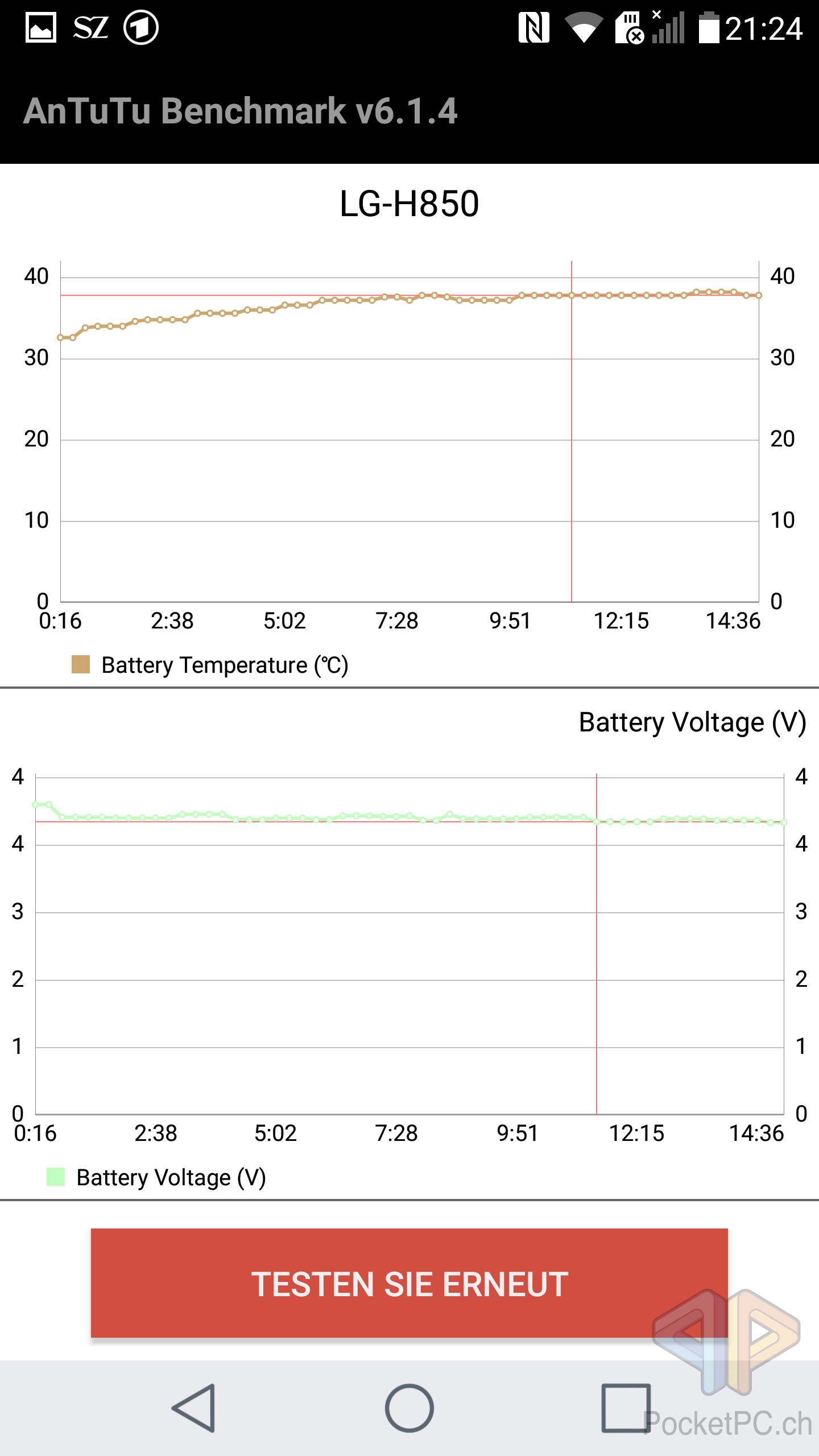 Der 2’800 mAh starke Akku klingt nicht nach sehr viel Leistung für ein dermassen grosses Display, liefert aber genügend Power für den Tag. Unter Volllast kamen wir gut über 9.5 Stunden Dauerbetrieb mit verschiedenen Emailkonten, dem ein oder anderen Spiel zwischendurch (u. a. Candy Crush Saga, Defense Zone 2 HD, Bibi und Tina Reiterabenteuer, Real Racing 3), Telefonie und natürlich Nachrichten und Emails schreiben. Das beste ist allerdings, dass der Akku per USB-Type-C unglaublich schnell aufgeladen wird. Innert einer Stunde ist der Akku von 0 % auf 96 % aufgeladen, ein paar Minuten später auf 100 %. Probleme mit Quick Charge gab es im Test nicht, auch wenn die öffentliche Diskussion in der letzten Woche die User_innen doch ein wenig verunsicherte. Hierzu haben wir eine News veröffentlicht, die Klarheit in die Angelegenheit bringt. Fakt ist: Im Test funktionieren sowohl Quick Charge, als auch Datenübertragung per USB-Type-C absolut reibungslos.