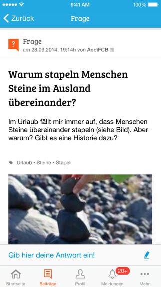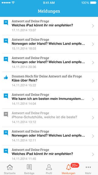 Der Sprung von 1.9 nun auf die neue 2.0 Version der Gutefrage.net App hat dem System durchaus gut getan. Es gab vor allem eine starke Anpassung an das flache Design von iOS mit modernen optischen Spielereien. Die Navigation bleibt dabei immer übersichtlich und so könnt ihr all eure Fragen im Profil verwalten und auch eine Übersicht über Antworten anzeigen lassen. Bewertungen zeigen immer den hilfreichsten Beitrag zur Fragestellung.