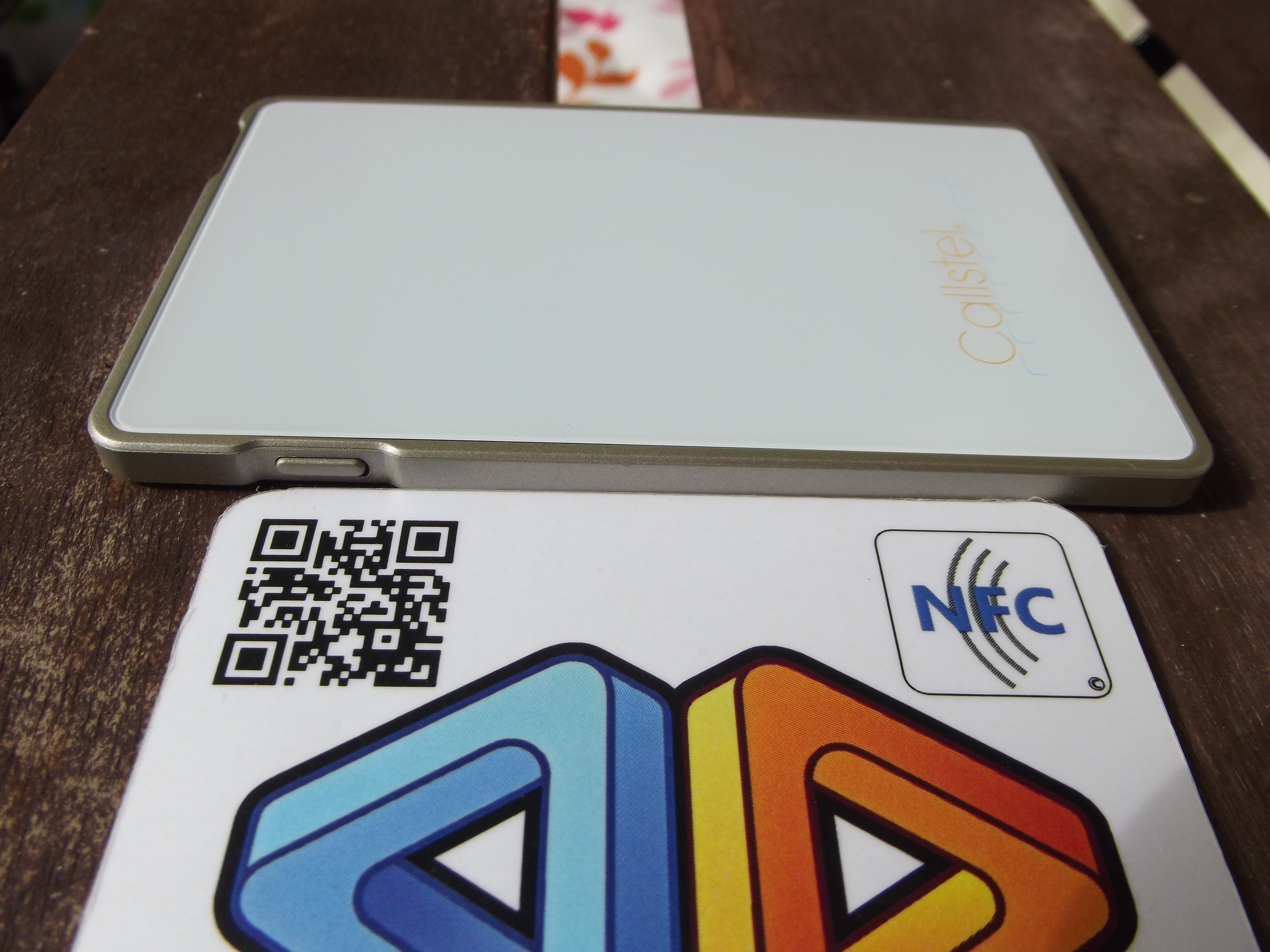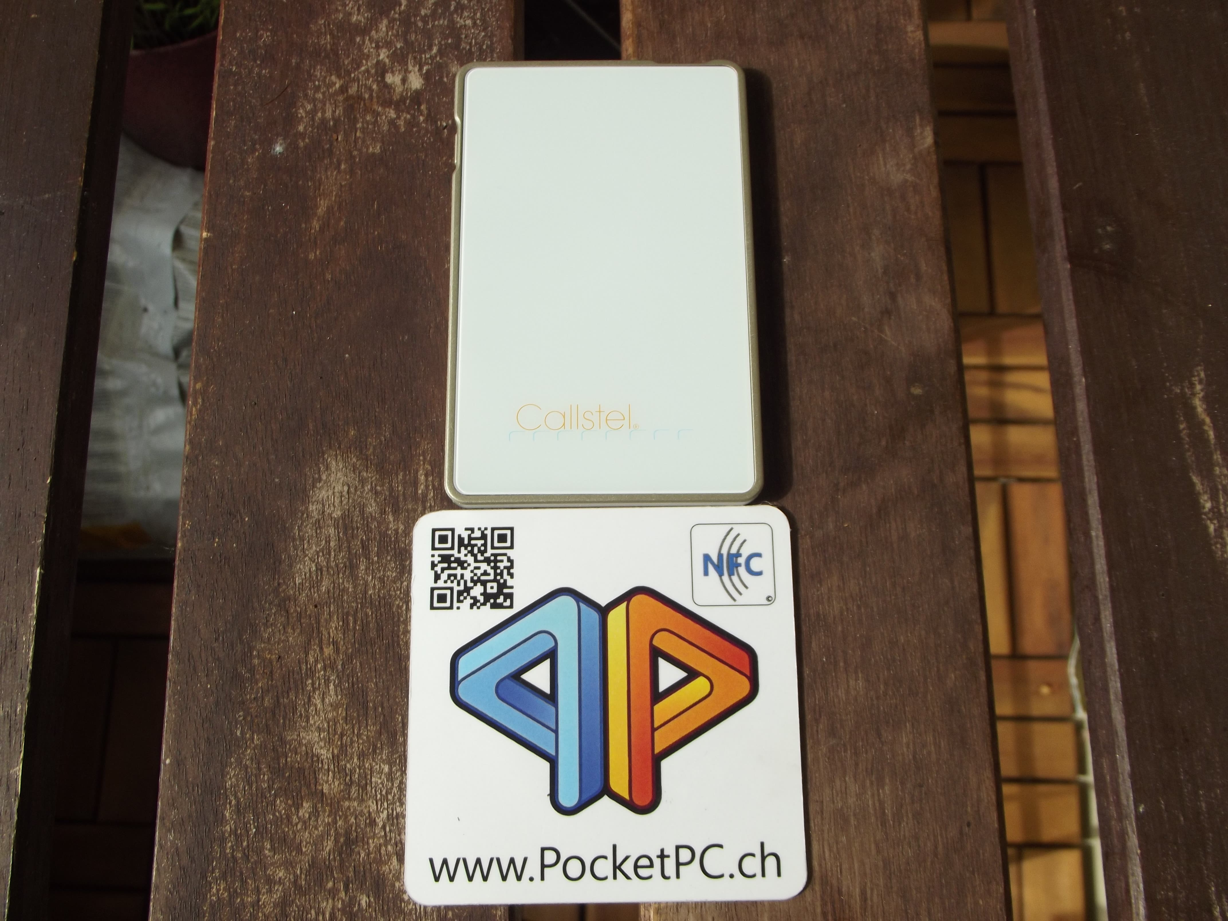Geliefert wird der Adapter mit einem kurzen microUSB-Ladekabel und einer kurzen Anleitung und SIM-Karten-Schacht-Tool. Er besteht aus einem kleinen weissen Gerät im Kreditkartenformat. Im Inneren des 86 x 55 x 4 mm kleinen und 32 g leichten weissen Kästchens mit Metallrahmen sorgt ein 500 mAh Akku für ca. vier Stunden Gesprächszeit und bis zu 120 Stunden Stand-by. In nur zwei Stunden ist der Akku per USB-Kabel am microUSB-Anschluss auf der Oberseite aufgeladen. Neben dem Ladeanschluss befindet sich ebenfalls der SIM-Karten-Schacht im microSIM-Format sowie eine Ein/Aus-Taste. Die linke Gehäuseseite beherbergt eine weitere Taste, die als Kameraauslöser fungiert, rechts finden wir drei kleine Öffnungen für den eingebauten Lautsprecher und im Inneren der weissen Fläche ist in der oberen rechten Ecke eine kleine Status-LED untergebracht, die durch das Kunststoffgehäuse schimmert.