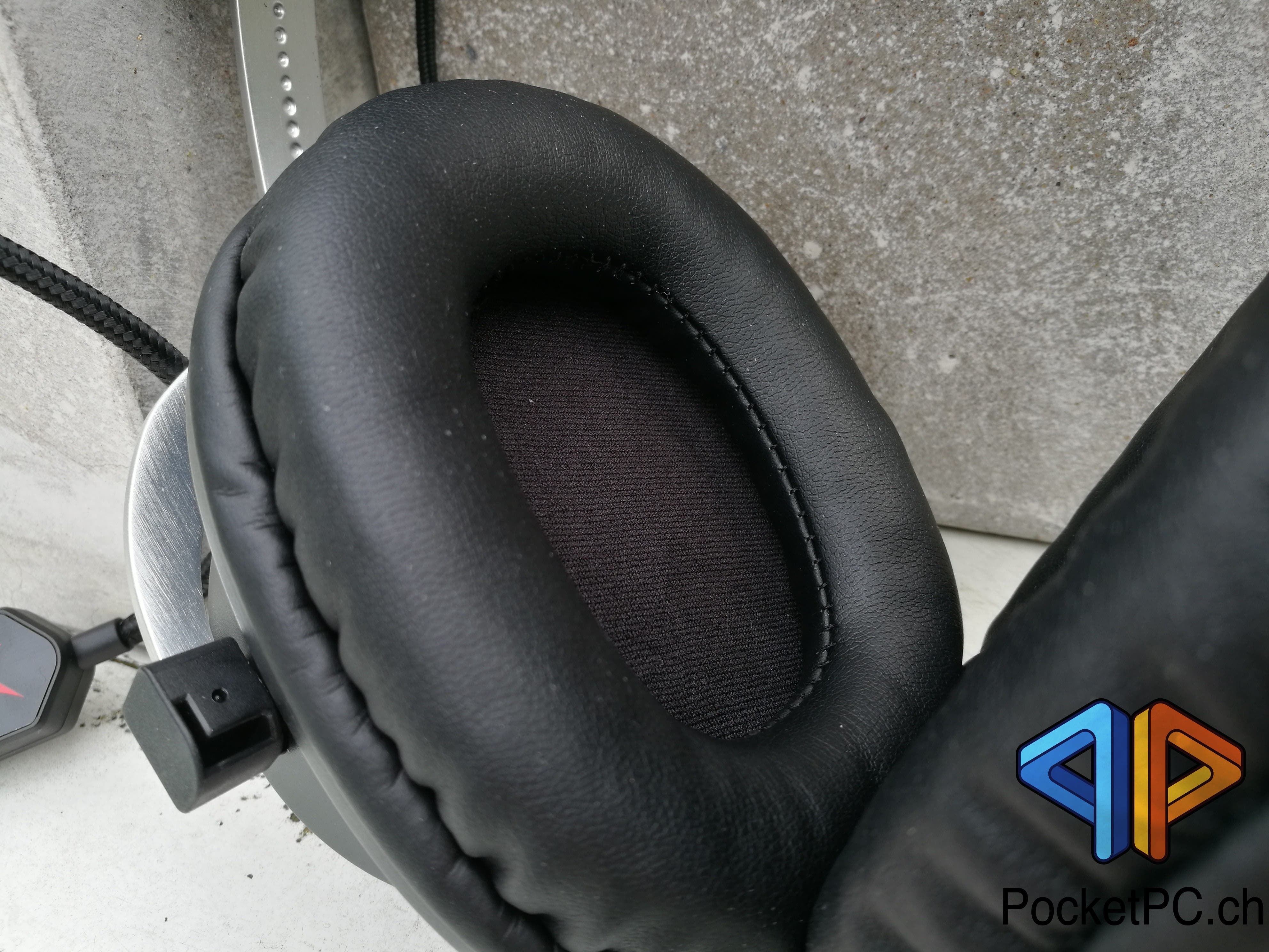 Das Kabel ist mit Stoff ummantelt, was in unseren Augen bei hochwertigen Headsets zum Standard werden sollte. So bleibt das baumelnde Anhängsel des Kabels nicht nur deutlich flexibler, es ist auch leichter zu entwirren, sofern dieses sich mal zu sehr verknoten sollte. Selbst die Verbindungskabel an den Ohrmuscheln, welche sich dann durch die Kopfpolsterung schlängeln, sind durch dicken Stoff geschützt.