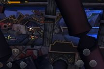 Dasselbe gilt übrigens auch für die Grafik. Diese ist zwar gut und vor allem in der nativen Auflösung der iPad Air und iPad mini 2 Modelle extrem scharf, doch sind die Texturen im Allgemeinen relativ detailarm. Auf Android kommt die etwas niedrigere Auflösung und die nicht ganz vorteilhaft eingesetzte Kantenglättung zum Vorschein, was zu Kantenflimmern führt. Generell ist es auf allen Plattformen so, dass es hier und dort kleinere Clipping-Fehler gibt und der Space Marine auch einmal mit den Füssen im Boden steht, was allerdings nur sehr selten passiert. Auf Apples Tablets macht Warhammer 40K Carnage vor allem im Bereich der Kantenglättung und der hohen Auflösung einiges her: Treppenstufen sind nahezu nicht zu erkennen. Allerdings konzentriert man sich eh auf das Gemetzel im Vordergrund. Zum Stehenbleiben und Bestaunen der Grafik lädt der Titel aber nicht ein.