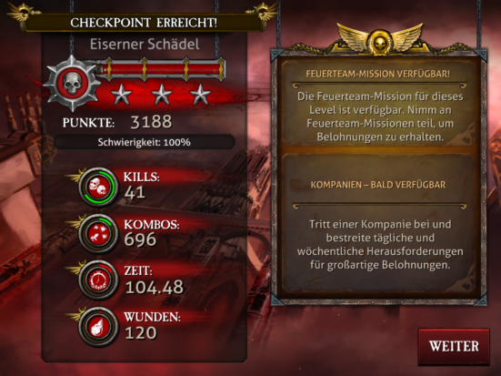 Die Grafik ist, wie der Sound, auf einer gesunden Ebene als recht ordentlich zu bezeichnen. Sie feuern allerdings nicht aus allen Rohren oder setzt besondere Akzente. Braucht es aber auch irgendwie nicht, denn das Spiel bietet mit seinem kurzweiligen Spielprinzip genug Anreize. Erhältlich ist das Spiel für Android im Google Play Store und im Apple App Store für jeweils 5.99 EUR. Und das ist einer der grösseren Knackpunkte: Spiele mit mehr Umfang sind stellenweise sogar billiger. Für Fans der Serie, die Warhammer 40K auch für unterwegs haben wollen, sollte das aber keine Hürde darstellen und Fans sei es auch ans Herz gelegt! Ich hatte jedenfalls meinen Spass mit dem Titel. Android-Spielerinnen und -Spieler können das Game aber immerhin Probespielen, während eine Lite-Version im App Store von Apple nicht zu finden ist.