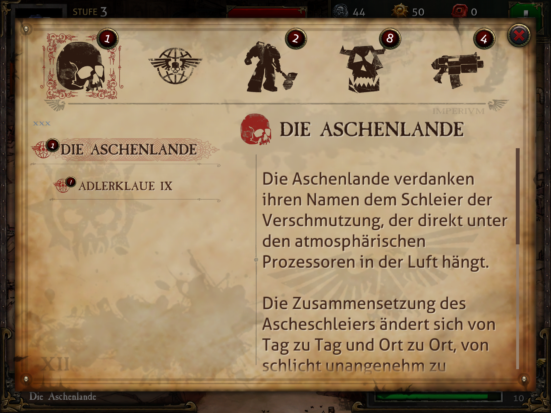 Eine handfeste Story sollte man nicht erwarten, aber Mal im Ernst: Auch Diablo, Sacred oder Torchlight sind nicht wirklich einer goldenen Feder entsprungen. Damit diese Spiele Spass machen, braucht es aber auch keinen Leitfaden mit ausgeklügelten Wendungen, spannenden Szenen oder dusseliger Romantik. Hier ist vor allem der Fortschritt des Charakters in Form von Gegenständen und Fähigkeiten wichtig und Warhammer 40k Carnage zieht dieses Klischee bis zum Ende hervorragend durch. Mal ganz grob überflogen: Ein Schiff ist auf einem bedrohlichen Planeten abgestürzt und hat ein Notsignal abgesendet. Ein edler und nach Blut dürstender Space Marine – der Gattung Ultramarine – hat es erhört und kommt zur Rettung.