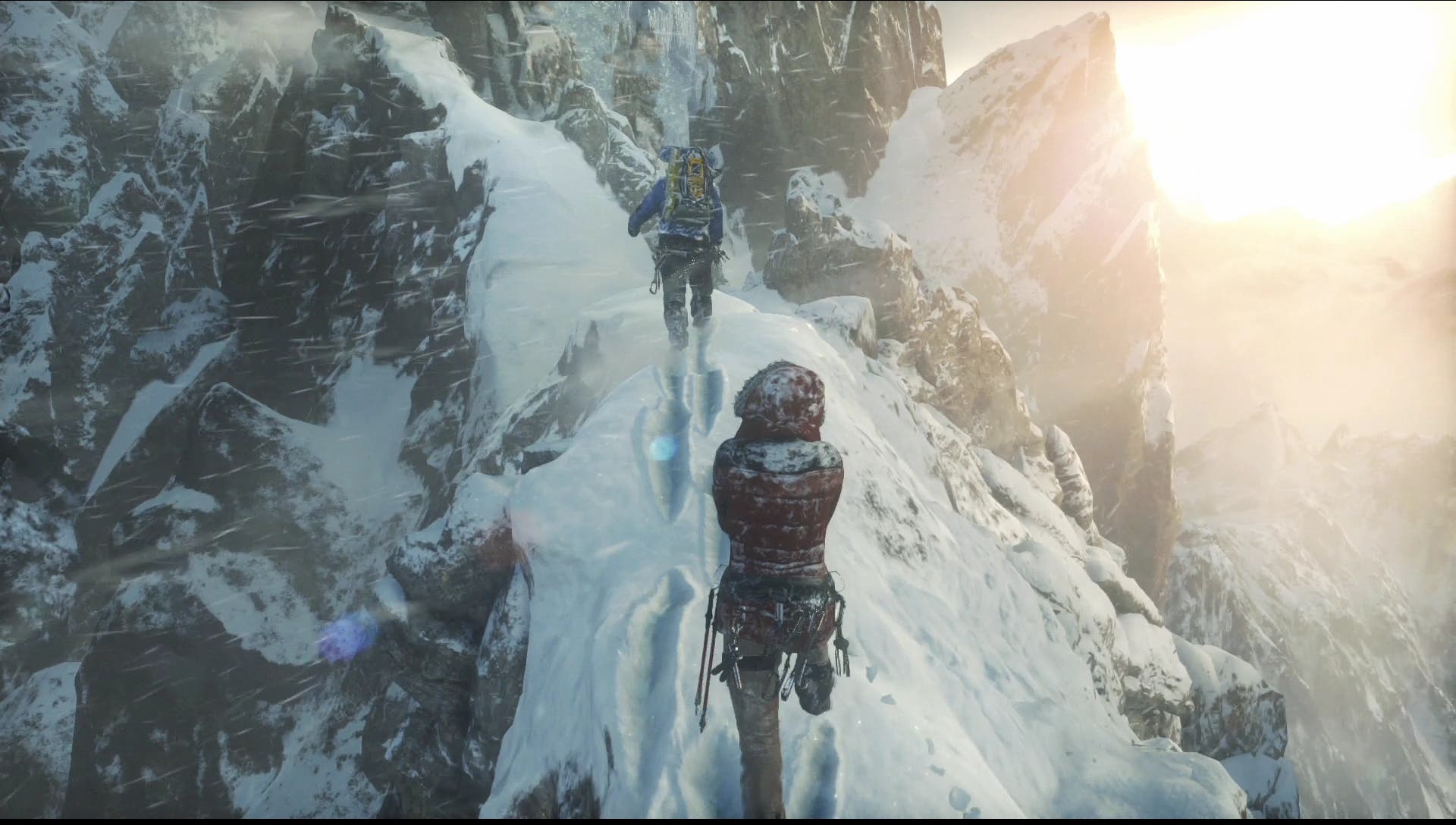 Während des Gameplays wird die Bildrate allerdings anstandslos konstant gehalten, sodass man keine störenden Ruckler oder eine Verzögerung der Eingaben feststellen kann. Trotzdem kann die Optik durchaus überzeugen. Bereits im ersten Abschnitt des Spiels, bei welchem man einen Berg erklimmen muss und durch tiefen Schnee stapft, weiss Rise of the Tomb Raider durchaus zu beeindrucken. Tiefschnee, in welchem Fussspuren extrem realistisch dargestellt werden und die Füsse präzise Furchen in den Schnee ziehen, Eis und Gletscherwände in schimmerndem Blau, bei denen man auch tief im Eis noch Strukturen und Risse erkennt sowie dichter Schnee mit unzähligen Partikeln, welcher eine bedrückende Atmosphäre zaubert. All das sorgt für eine realistische Optik und das bisher schönste Tomb Raider.