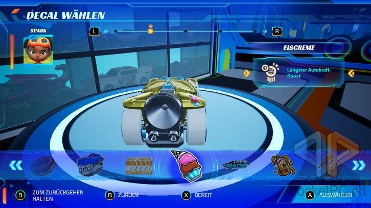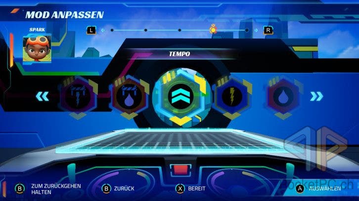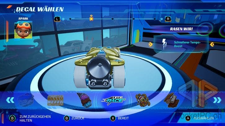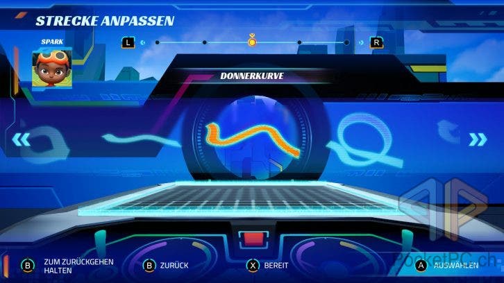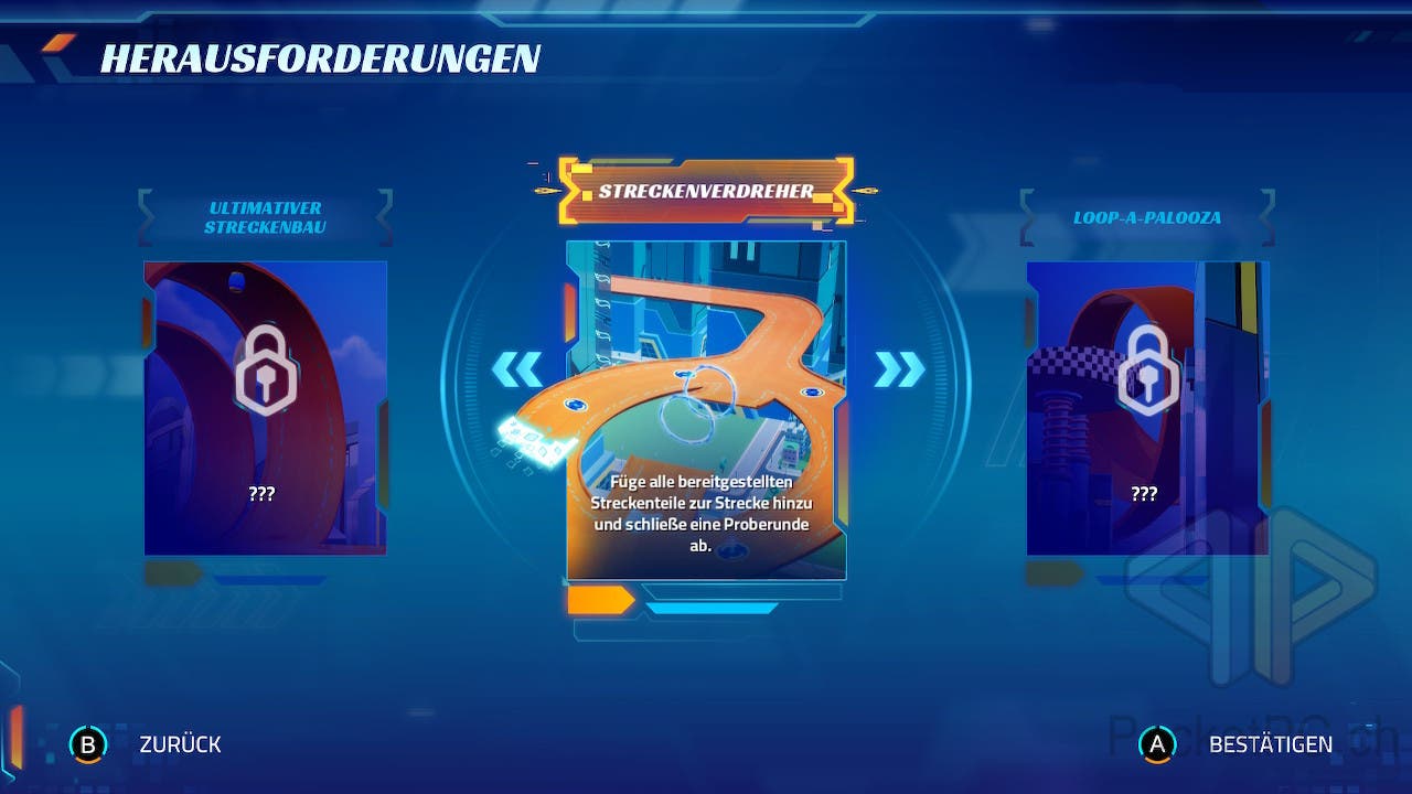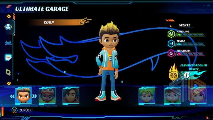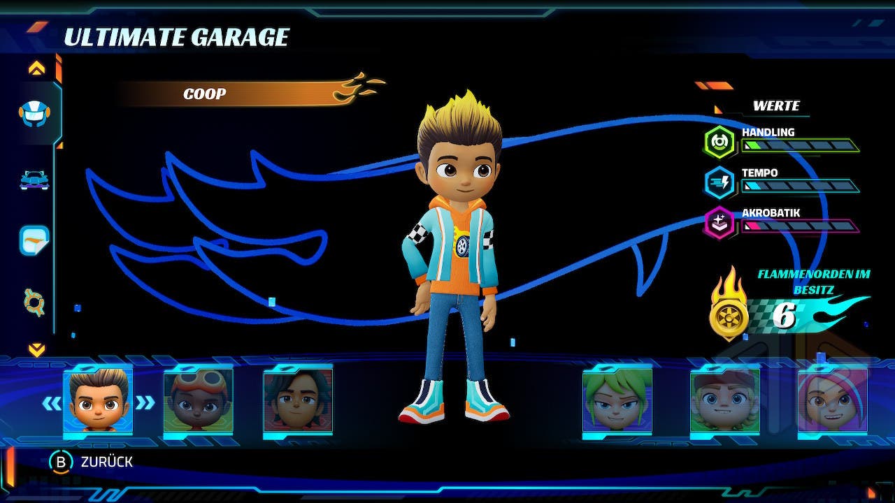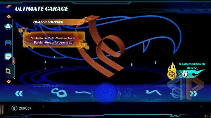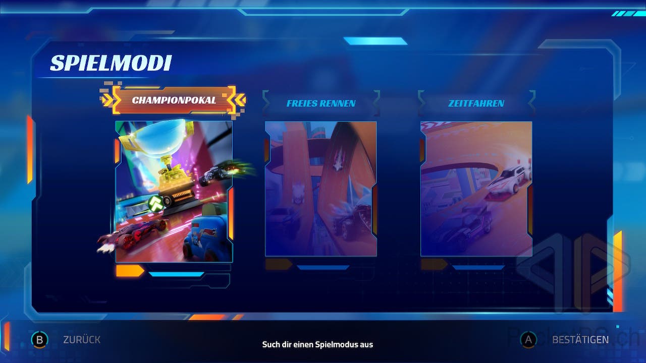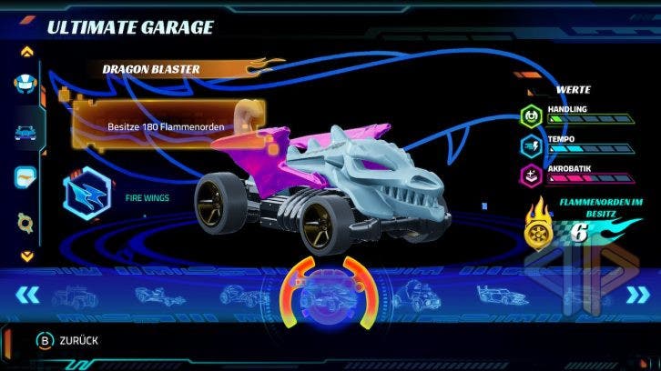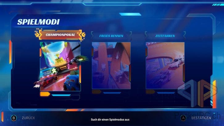 Das Spiel überrascht zunächst einmal positiv mit seinem Umfang. Nicht nur gibt es einen recht umfangreichen Campagnen-Modus und ein Renn-Camp zum Üben spezifischer Stunts. Auch gibt es einen klassischen Championpokal Zeitfahren-Rennen und freie Rennen sowie den Streckenbau-Modus zu entdecken. Mit Flammenorden, die es dafür zu ergattern gewinnt, kann man anschliessend neue Autos, Decals und Streckenteile in der Garage freischalten.