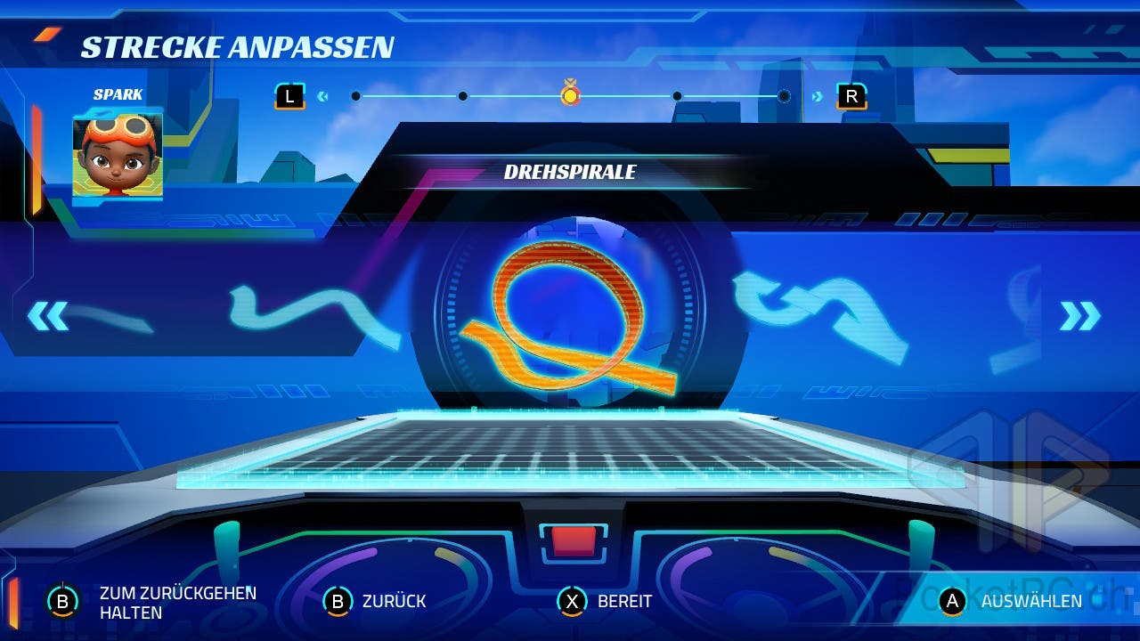 Die Spielmodi sind nicht sehr unterschiedlich, was aber für ein Rennspiel auch nicht zu erwarten war. Dennoch macht es Spass, unterschiedliche Strecken zu befahren, gegen die Zeit oder gegen computergesteuerte Fahrzeuge anzutreten. Die Steuerung ist zwar nicht veränderbar, aber einfach und intuitiv. Man merkt aber auch, dass Hot Wheels Let’s Race: Ultimate Speed! auf jüngere Kinder ausgerichtet ist. Kaum gibt es Stellen auf den Rennkursen, an denen man herunterfallen kann, obschon sie sich alle in luftiger Höhe befinden. Die unterschiedlichen Fahrzeuge verhalten sich zwar verschieden, beschleunigen aber alle gleichmässig und zügig, gangschaltungsfrei und problemlos, so dass man nur eine Schultertaste gedrückt halten muss und dann mit dem linken Analog-Stick die Richtung korrigiert. Natürlich gibt es Booster einzusammeln und Öl-Lachen, denen man ausweichen muss. Aber diese beeinflussen gar nicht so stark den Rennverlauf, so dass auch jüngere Gamer nicht so schnell frustriert werden.