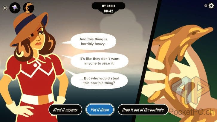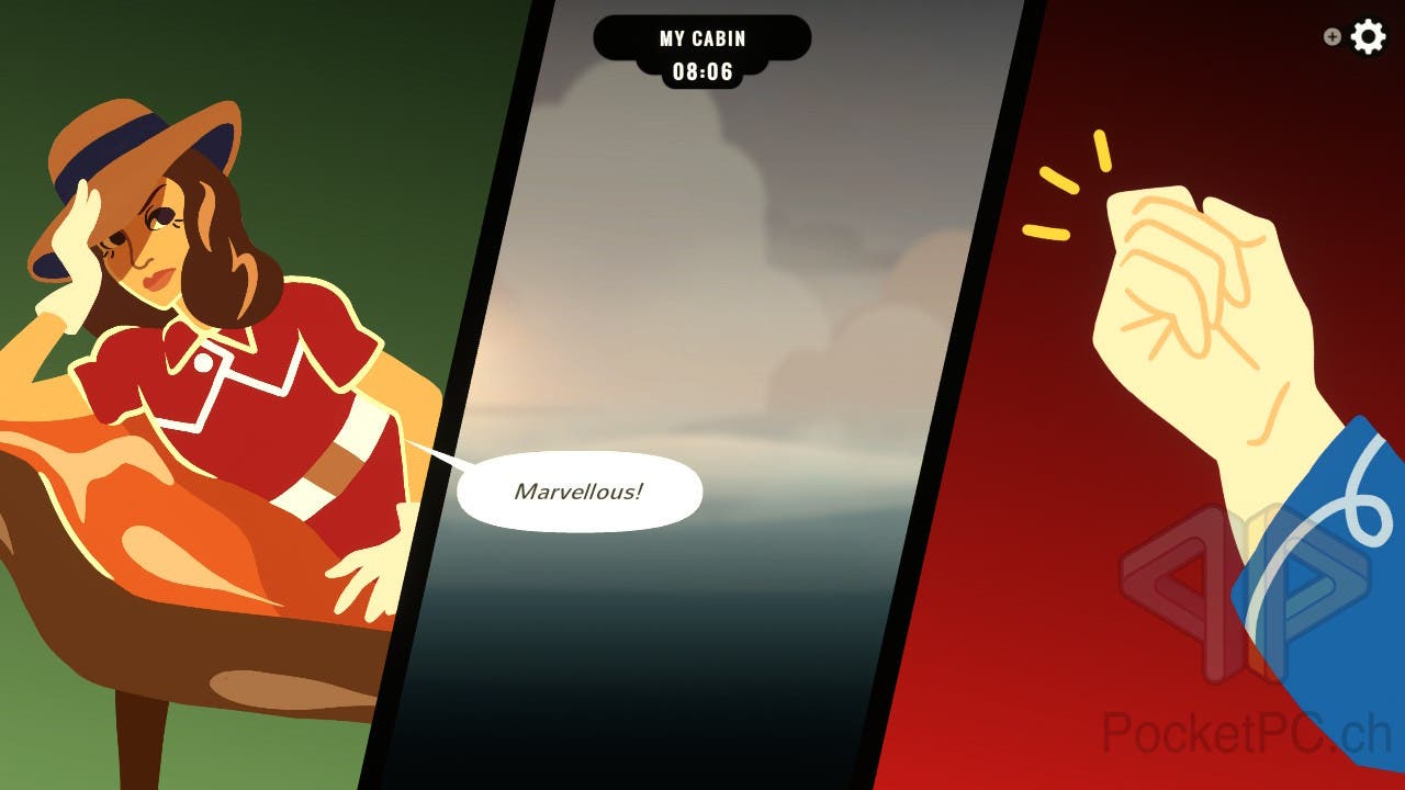 Auch die Graphik von Overboard! ist aufgeräumt und klar, sieht gut aus und ist sparsam aber passend animiert. Ein bisschen wie eines der Graphic Novel-Spiele, die vor Jahren auf dem Apple iPad schon für Furore sorgten.