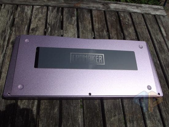 Wie von EPOMAKER gewohnt sind auf der Unterseite vier Gummifüsse zu finden und ein silbernes EPOMAKER-Schild in der Mitte. Die zweistufigen, ausklappbaren Füsse fehlen indessen. Der Anstellwinkel der Tastatur ist also immer fix durch deren Bauart bedingt.