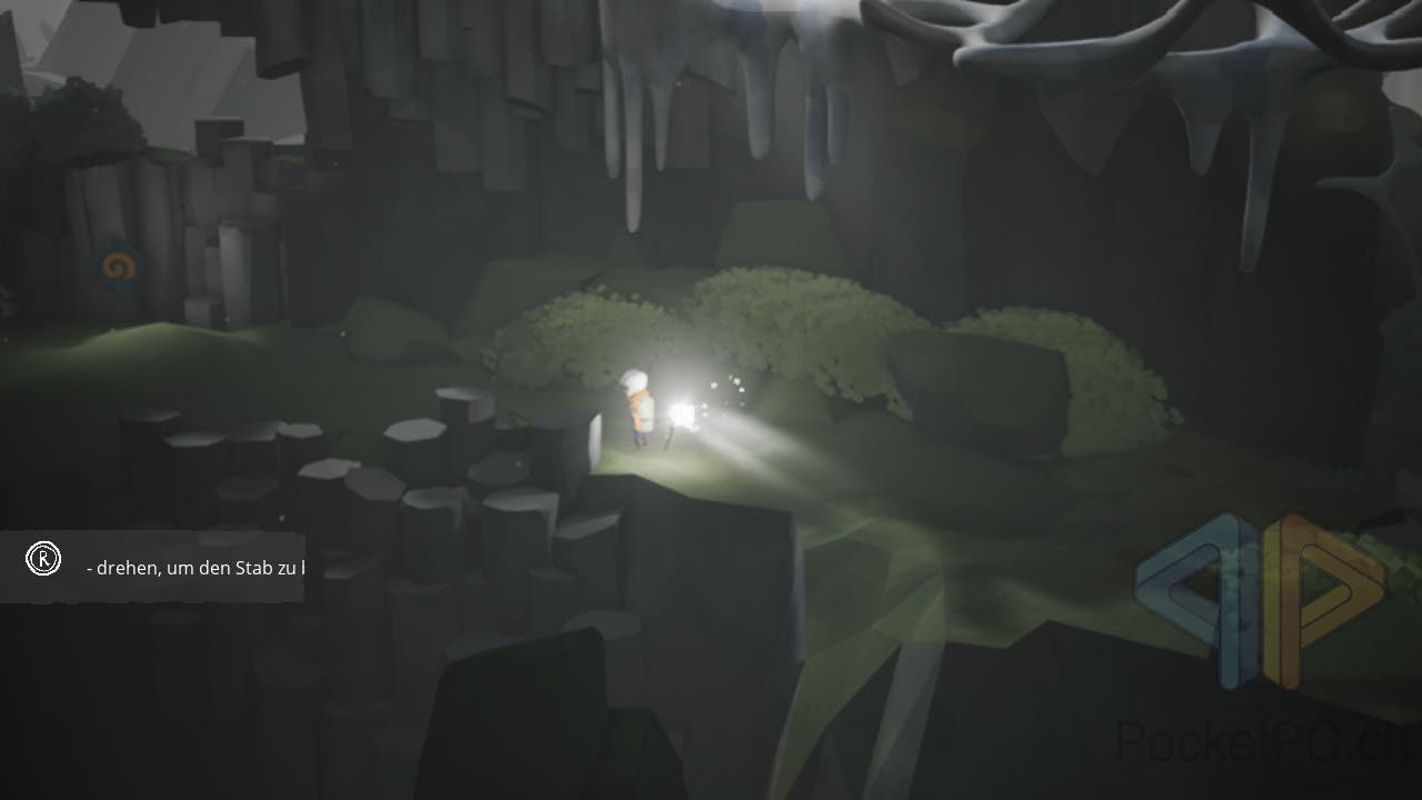 Das alles funktioniert recht gut und ansprechend. Kazimir und sein Stab lassen sich gut und intuitiv steuern und dass die Sprachausgabe sich auf unverständliches Murmeln beschränkt, stört auch nicht weiter. Es trägt eher zur Stimmung bei. Wenn die Hauptfigur stirbt, taucht sie einfach am letzten Speicherpunkt wieder auf, so dass der Schwierigkeitsgrad auch nicht all zu hoch ist. Nur manchmal steckt Kazimir irgendwo zwischen zwei unsichtbaren Objekten fest, so dass uns nur ein Beenden des Spiels als Möglichkeit bleibt. Schade, denn solche Bugs, die selbst nach dem Patch zum Release-Tag noch vorhanden sind, müssten nicht sein. Wir hoffen auf weitere Patches.