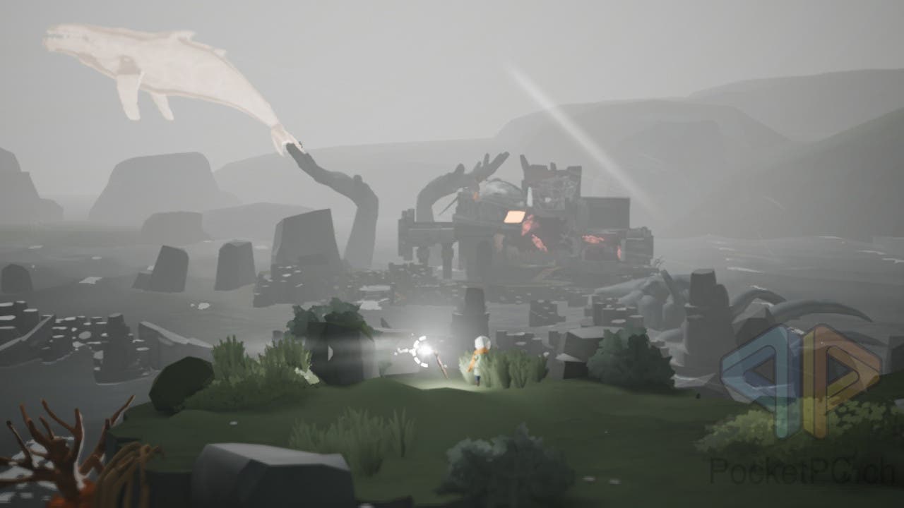 In der Spielwelt werden göttliche Wale angebetet und wir spielen die Figur des alten Heilers Kazimir. Mit einem magischen Stab kann Kazimir einen Lichtstrahl erzeugen und so das Übel, dass die Welt heimsucht, für kurze Zeit verbannen. Doch um das Miasma, die mysteriöse Plage, die die Welt befallen hat, zu besiegen, begeben wir uns an Land und zu Wasser auf die Suche nach einem Ritual, das die verwundete Seele der Hauptfigur Kazimir heilen soll.