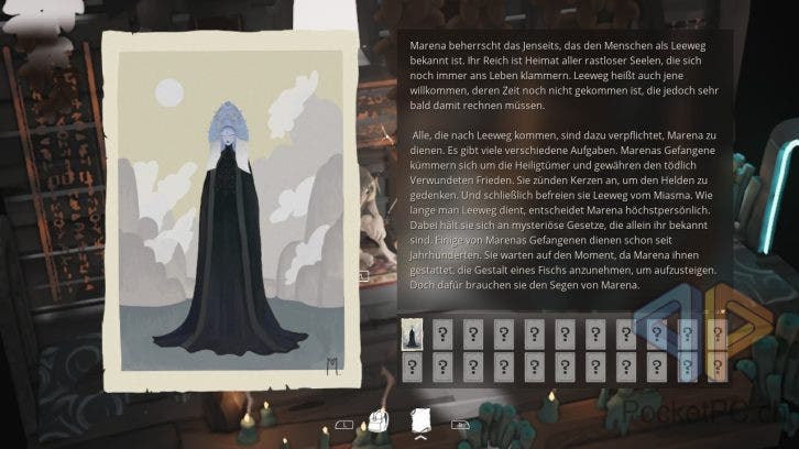 In der Welt, die wir so erkunden, begegnen wir auch vielen anderen Charakteren, denen wir als Heiler die Schmerzen lindern können. In dieser Welt voller Mythen, in der göttliche Wale leben und die See als heilig angesehen wird, sollen viele Motive angelehnt an die Natur und die Legenden Islands sein. Doch laut Goodwin Games sind die Mythen vor allem slawisch inspiriert und werden auf der Reise von Kaszimir zum Leben erweckt werden. Ich kenne mich da zu wenig aus. Aber faszinierend melancholisch bis düster sind sie.
