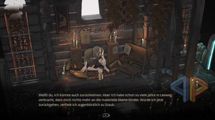 So begegnen wir mit Kazimir in Selfloss allerlei ungewöhnlichen Charaktere, Feinden und Gottgleichen, die Leeweg, das Jenseits, bevölkern, sowie rastlosen Seelen, die hier noch festsitzen, bis sie zu Fischen werden und aufsteigen dürfen.
