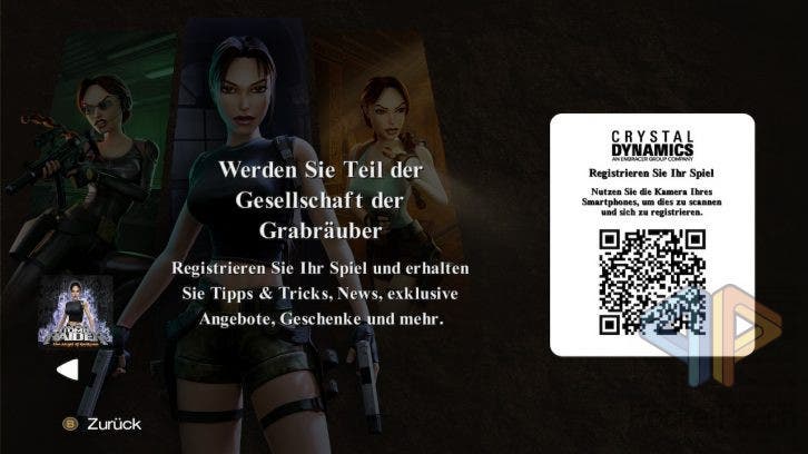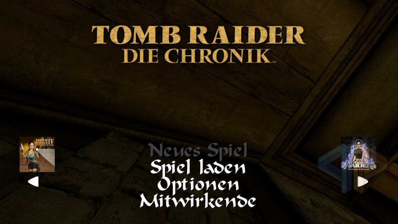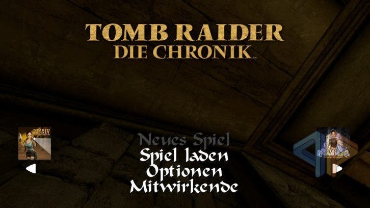 Die betagte Hybrid-Konsole von Nintendo scheint mit Tomb Raider IV bis VI Remastered erstaunlich gut zurechtzukommen. Im Dock-Modus läuft das Spiel stets in 1080p, während es im Handheld-Modus mit 720p dargestellt wird – also genau an den technischen Grenzen der Hardware. Die Bildrate bleibt dabei konstant bei 30 Bildern pro Sekunde. Immer. Keine Ruckler, keine unerwarteten Leistungseinbrüche. Das Menü ist nun nicht mehr ganz so hübsch vertikal im Stil des Originalmenüs aufgebaut, sondern besteht aus vier einzelnen horizontalen Einträgen. Vier? Ja, denn der vierte Eintrag ist eine Werbung und ein QR-Code für TombRaider.com. Hätte ich persönlich nicht gebraucht.