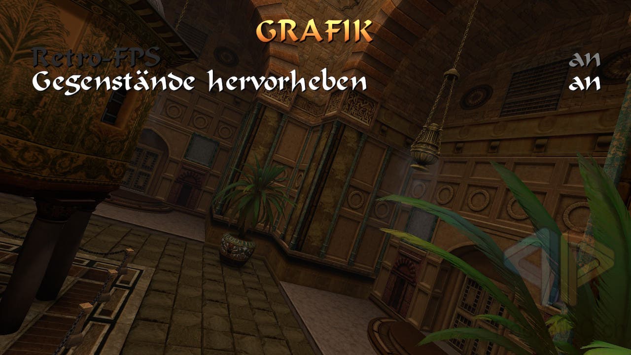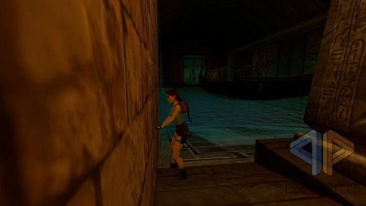 Die originale Grafik des vierten Tomb Raider-Titels scheint dabei auch wieder näher an der PlayStation 2 zu liegen als an der MS-DOS-Fassung mit 3dfx-Beschleunigung. Besonders das Alphablending und das Antialiasing der Texturen sowie die daraus resultierende Beleuchtung wirken im Vergleich flacher und heller. Das muss jedoch nicht zwangsläufig ein Nachteil sein, denn gerade im ersten und zweiten Tomb Raider-Teil sind einige Bereiche der für heutige Spieler ungewohnt kantigen 3D-Welt oft recht düster. Hier kann der Wechsel zwischen den beiden Grafik-Modi helfen, um besser zu erkennen, wohin man sich bewegt. Alternativ kann man auch einfach die beiden Pistolen abfeuern, die ja immer noch mit unendlicher Munition gesegnet sind, um durch das Mündungsfeuer kurz die Umgebung zu erhellen. In den Videosequenzen von Tomb Raider VI – Angel of Darkness hingegen ist dies nicht der Fall. Hier wird noch nicht mal die Auflösung sichtbar verändert.