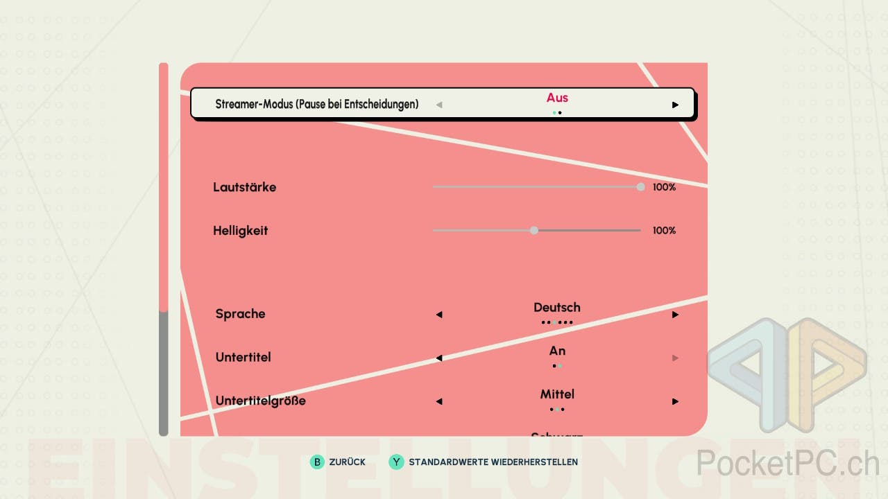 In den Einstellungen kann neben der Lautstärke und Helligkeit auch die Untertitel und deren Grösse eingestellt werden. Auch die Sprache der Menüs, Antwortmöglichkeiten und Untertitel wird hier eingestellt, denn das Spiel selbst beziehungsweise die Videosequenzen, die das Spielgeschehen ausmachen, sind immer auf Englisch vertont. Zudem gibt es in den Einstellungen die Möglichkeit, den sogenannten Streamer-Modus zu aktivieren. Damit wird das Spiel pausiert, wenn eine Entscheidung getroffen werden muss. Ansonsten hat man nur wenige Sekunden Zeit, um auszuwählen und zu bestätigen. Das kommt einem natürlichen Gesprächsfluss zwar viel näher, macht aber, wenn man das Spiel nicht alleine spielt, sehr viel schwerer. Who Pressed Mute on Uncle Marcus? ist nämlich ein Single Player Game, eignet sich aber hervorragend für einen Krimi-Abend zu zweit oder mit noch mehr Menschen.