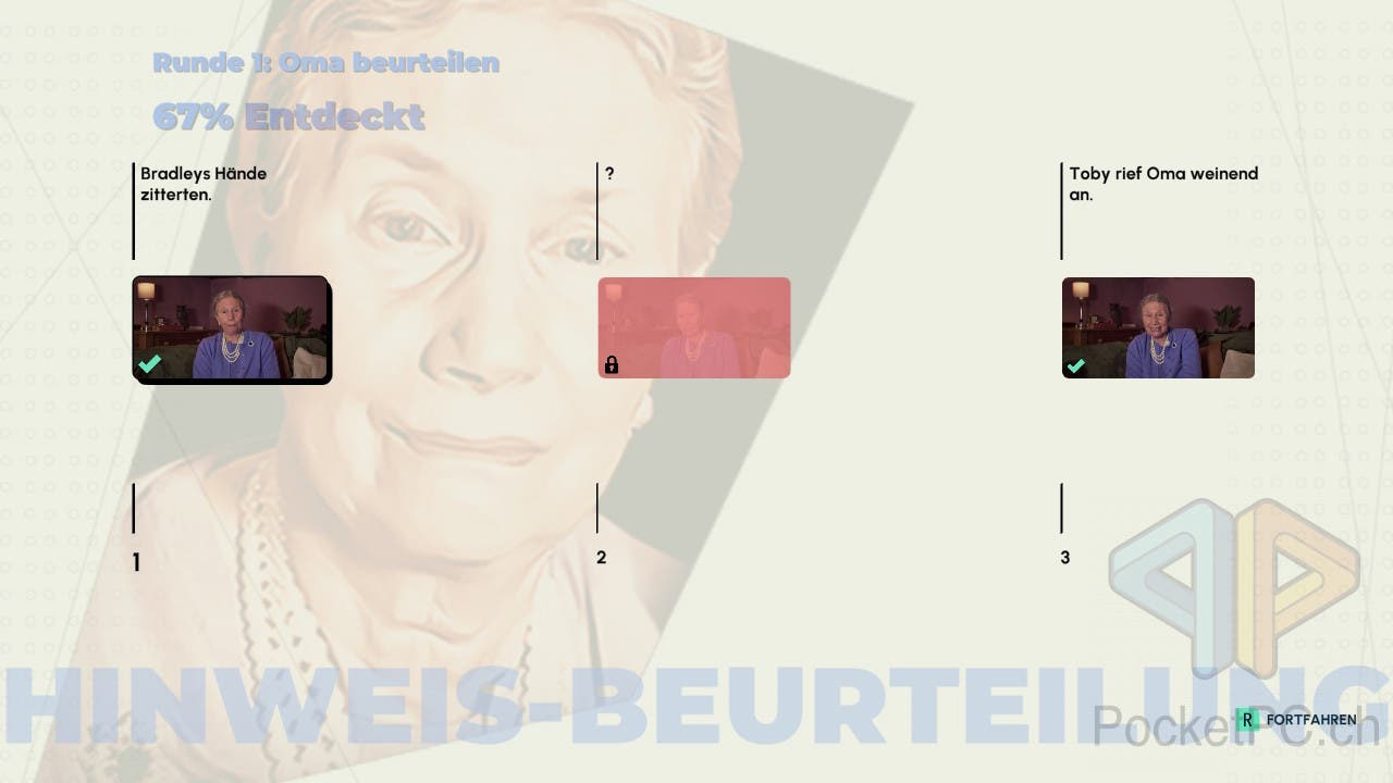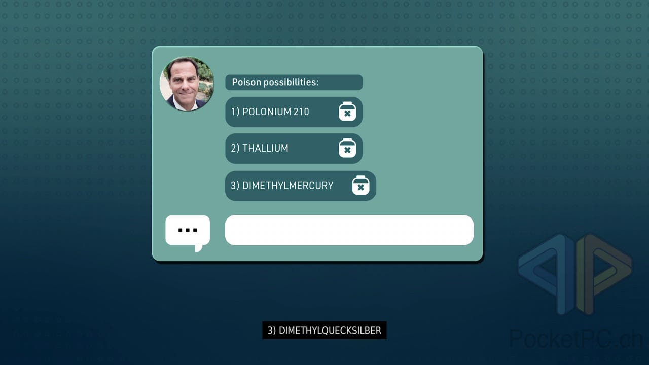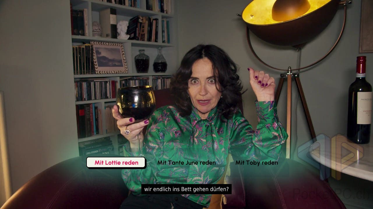 Wir nehmen im Game nun die Position einer der Töchter des Geburtstagskinds ein, nämlich von Abby, die wiederum von Abigail Hardingham (bekannt aus The Missing) gespielt wird. Onkel Marcus, gespielt von Andy Buckley (bekannt aus der Serie The Office und Jurassic World) ist nicht mit am Quiz beteiligt, schaltet sich aber immer wieder auf Abbys Bildschirm, denn er hat ihr anvertraut, dass er beim letzten Treffen von einem vergiftet wurde. Er hat nur noch wenige Stunden zu leben und wir müssen herausfinden, wer es getan hat und mit welchem Gift, um zu versuchen, das Leben von Abbys Onkel zu retten.