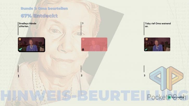 Die Grafik in Who Pressed Mute on Uncle Marcus? ist beeindruckend gut. Klar, wir sprechen hier von einem FMV-Spiel. Doch auch die Menüs, die Hinweis-Zwischenstände und die Auswahl-Menüs bei den Entscheidungen sind ansprechend und stilvoll passend gestaltet. Witzig und passend ist auch der Lebens-Balken von Onkel Marcus, der immer mal wieder auftaucht und uns zeigt, wie viel Zeit noch bleibt, die Lösung in diesem Rätsel siel zu finden.