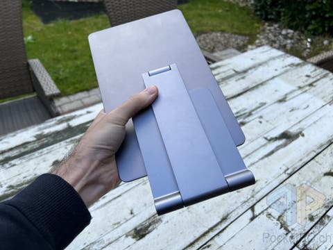 Wie schon erwähnt, das iPad Pro oder sich iPad Airs lassen sich sehr einfach magnetisch anbringen. Einfach nur aufsetzen und das Gerät hält tatsächlich bombenfest. Das ist auf der einen Seite natürlich ein grosser Vorteil. Schliesslich will niemand, dass das eigene iPad plötzlich den Abgang macht. Auf der anderen Seite sitzt es aber so bombenfest, dass es keine Technik gibt es mühelos wieder abzumachen. Der kleine Stand ist auch so leicht, dass ihr sowohl das iPad, als auch den Stand ordentlich festhalten und das Gerät irgendwie abziehen müsst.