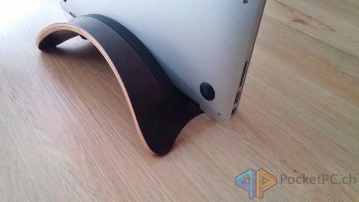 Auf der Unterseite des Ständers sind zwei Haken, an denen man die Kabel für die jeweilige Seite befestigen kann. Ein Tipp, wenn ihr euch solch einen Macbook Ständer zulegen wollt: Kauft euch ein zweites Netzteil. Eins für den mobilen Einsatz und eins für den stationären Einsatz. Nach einer gewissen Zeit nervt es einfach, alles ständig neu auf zustellen. Hier ist ein zweites Netzteil Gold wert!