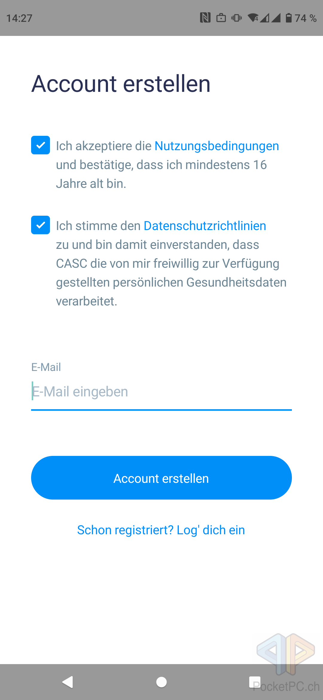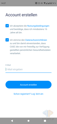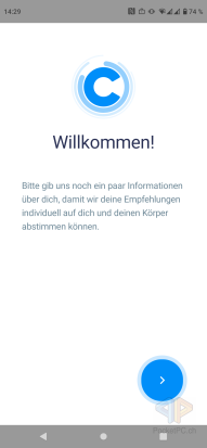 Nachdem man die App installiert hat, die es kostenlos für Android und iOS im jeweiligen Store gibt, meldet man sich in derselbigen mit der eigenen E-mailadresse und dem zugehörigen CASC-Passwort an. Dieses hat man vermutlich beim Bestellen des Testkits bereits angelegt. Muss aber nicht, denn die Teststreifen können auch ohne Useraccount geordert werden, nur die App erfordert dann eine Registrierung, um die Daten sicher zu verwahren. Denn neben einer E-Mailadresse braucht die App ein paar personenbezogene Daten, wie etwa Alter, biologisches Geschlecht, Grösse und Gewicht, die Ernährungsform und welches Ziel man mit der App verfolgen mag, also etwa sich gesünder zu ernähren, mehr Energie zu haben oder abzunehmen.