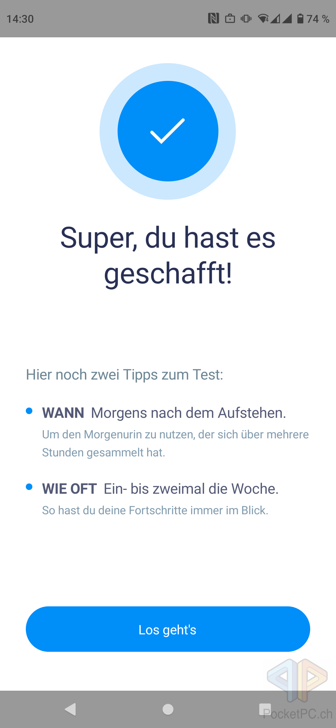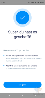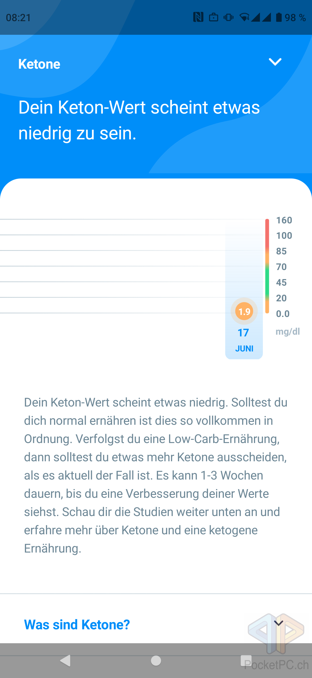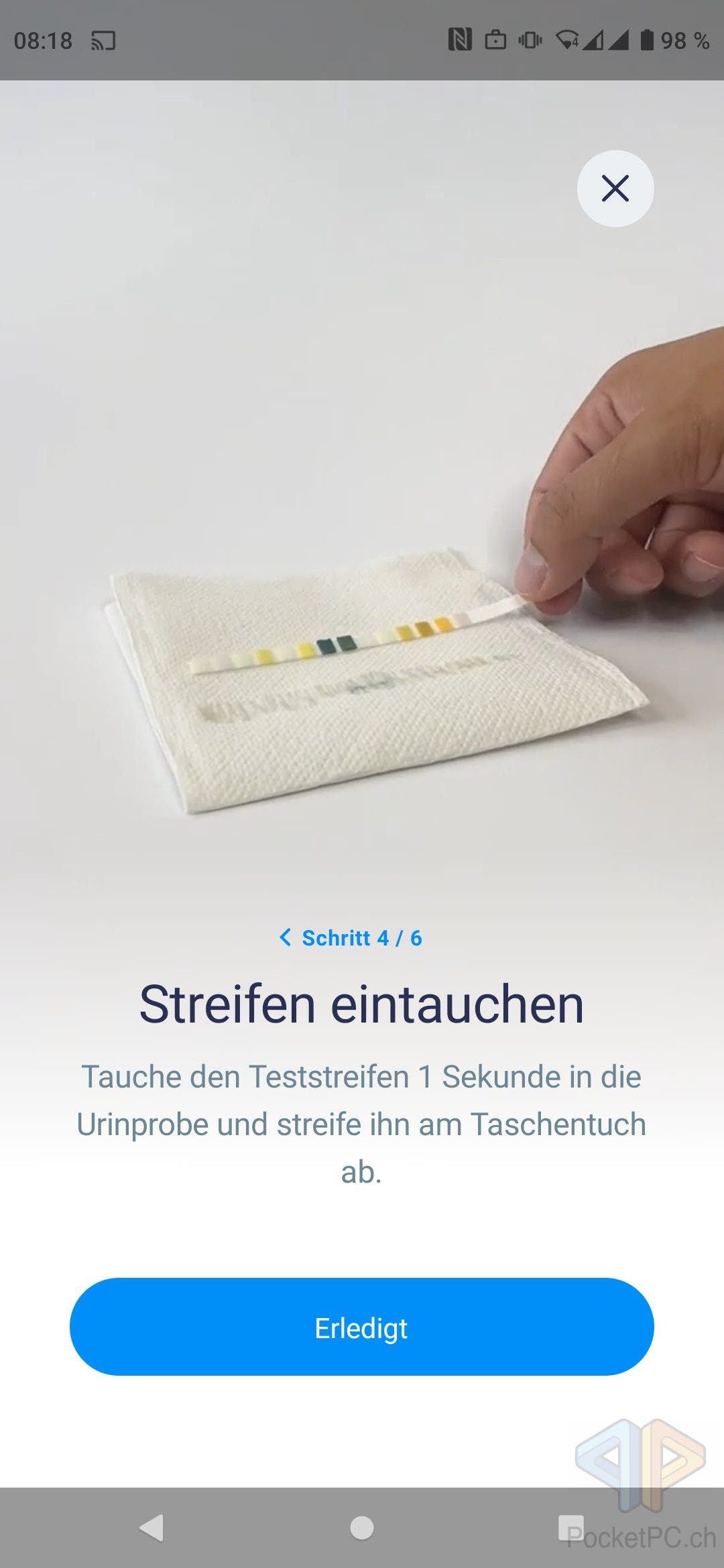 Toll sind auch die Ernährungsempfehlungen und deren Detailbeschreibungen. Weniger gefallen hat mit der Hinweis auf die Nahrungsergänzungsmittel sowie die Shop-Links dabei. Das hat so einen Kaffeefahrt-Beigeschmack, der den Gesamteindruck etwas trübt. Auch frage ich mich, warum das ansonsten so tolle Tutorial der App nicht erklärt, wie man den Teststreifen nach Gebrauch fachgerecht entsorgt. Klar, wer schon mal einen Urintest gemacht hat, weiss wohl, wie so etwas funktioniert und wirft ihn in den Haus- bzw. Restmüll. Aber ein Slide mehr hätte der App nicht geschadet.