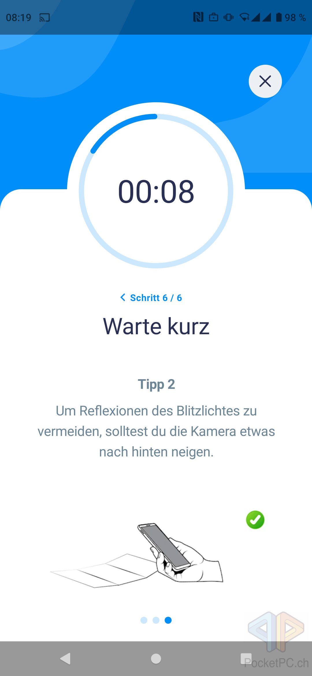 Das Smartphone dient dabei als Analyseinstrument und erkennt anhand des bunten Mosaiks um den Teststreifen, dass als Referenz dient, die Ausprägung der jeweiligen Messwerte auf dem Teststreifen. Diese Angaben können später alle nochmal im Reiter Profil der CASC Flow App angezeigt und auch verändert werden.