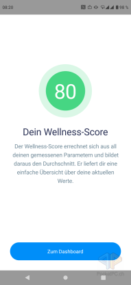 Wählt man einen anderen Score als Wellness aus, werden aus den zwölf Messwerten darunter diejenigen ausgegraut, die keinen Einfluss auf die jeweilige Kategorie haben.