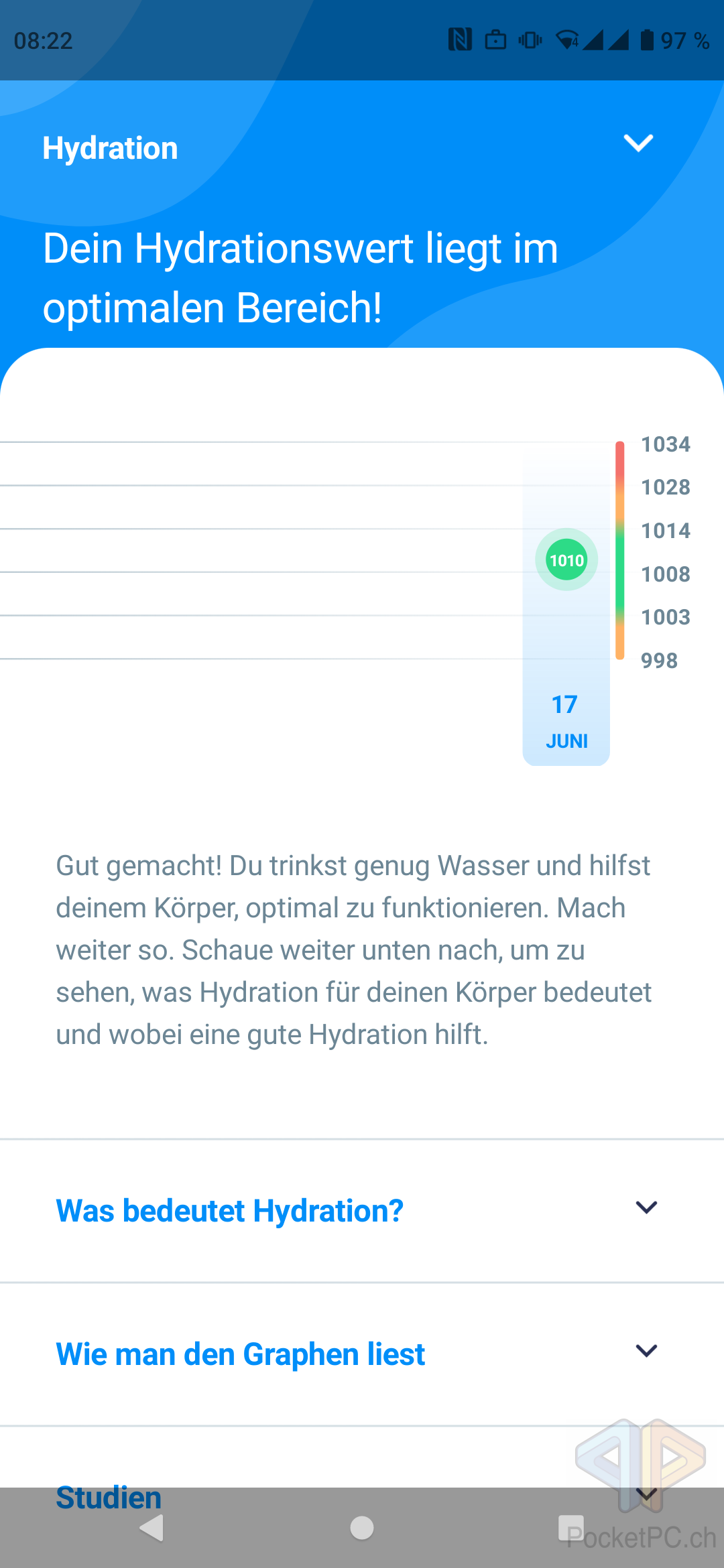 Es werden mehr als nur die Messergebnisse angezeigt, was CASC besonders macht. Neben den sechs Scores für Wellness, Abwehrkräfte, Energie, Fokus, Körper und Aussehen sind auch die zwölf Einzelwerte angemessen ausführlich und detailliert erklärt, so dass man schnell versteht, was genau damit gemeint ist und wie sich ein Messwert auf den eigenen Körper und das eigene Wohlbefinden auswirken könnte. Super, dass alles mit wissenschaftlichen Studien belegt wird. Das schafft Vertrauen.
