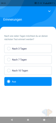 Zudem kann die App optional an den nächsten Test erinnern, enthält eine FAQ, einen Link zum Support und zum Shop des Herstellers.